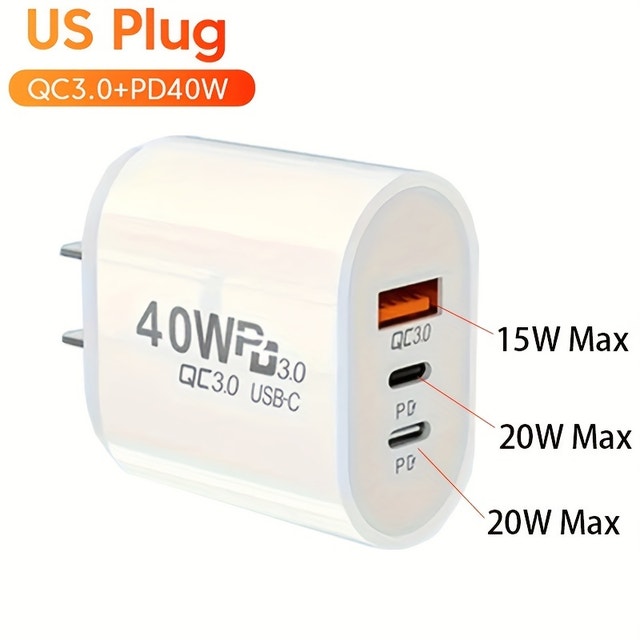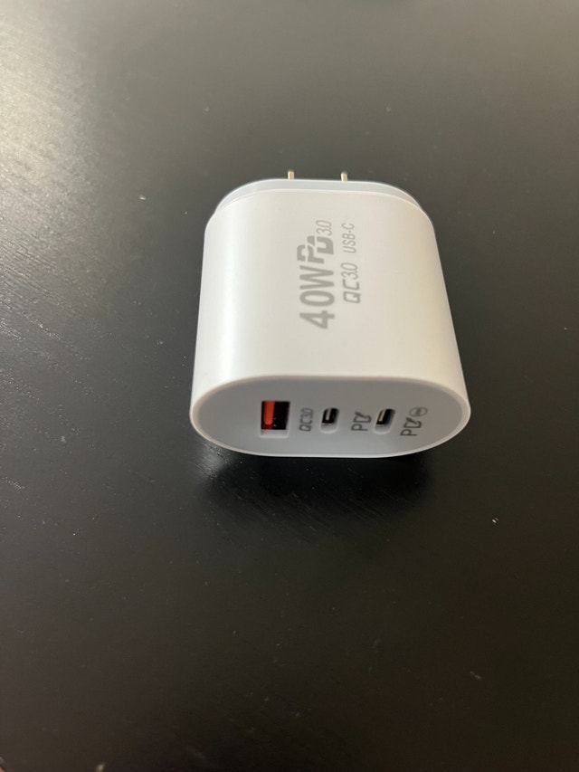 New 3-Port Fast Charging USB-C and USB Charger, 40W. Power up to 3 devices simultaneously. Compatible with all major brands. Cash and cashless payments accepted. Available for curbside pickup or drop-off/delivery. For Sale By Owner.