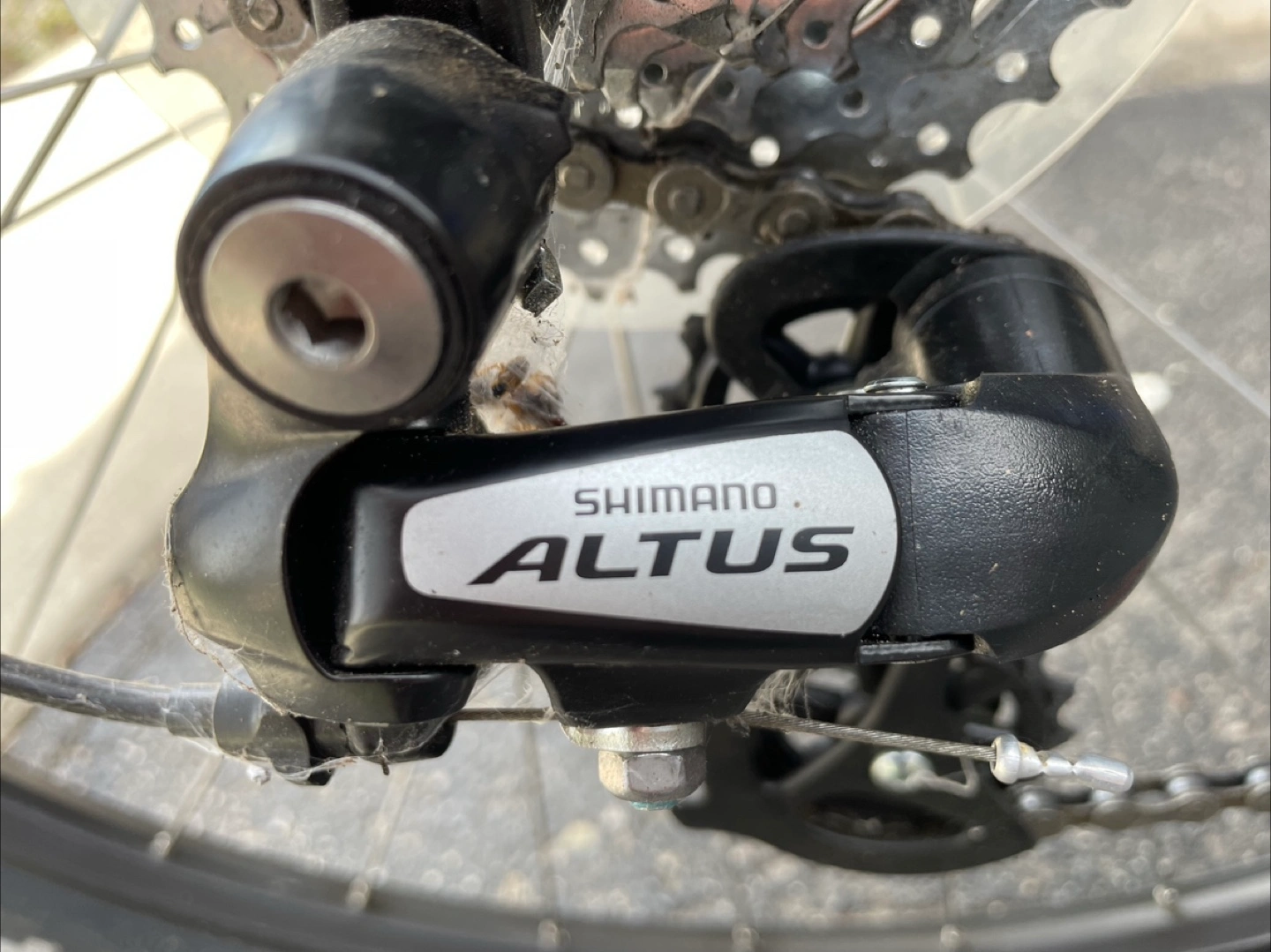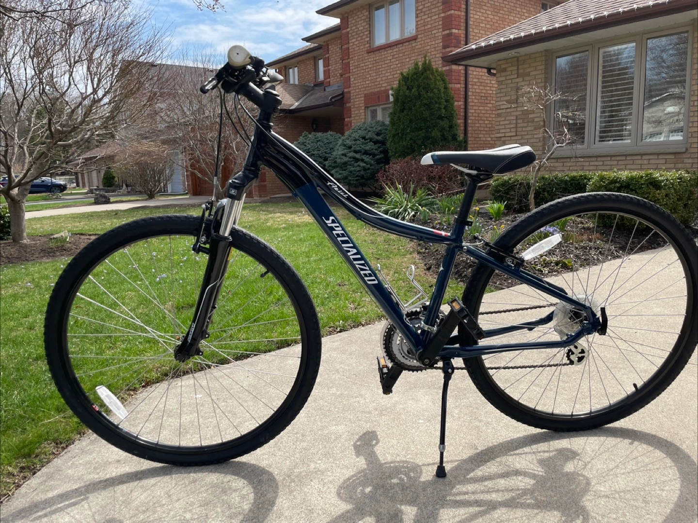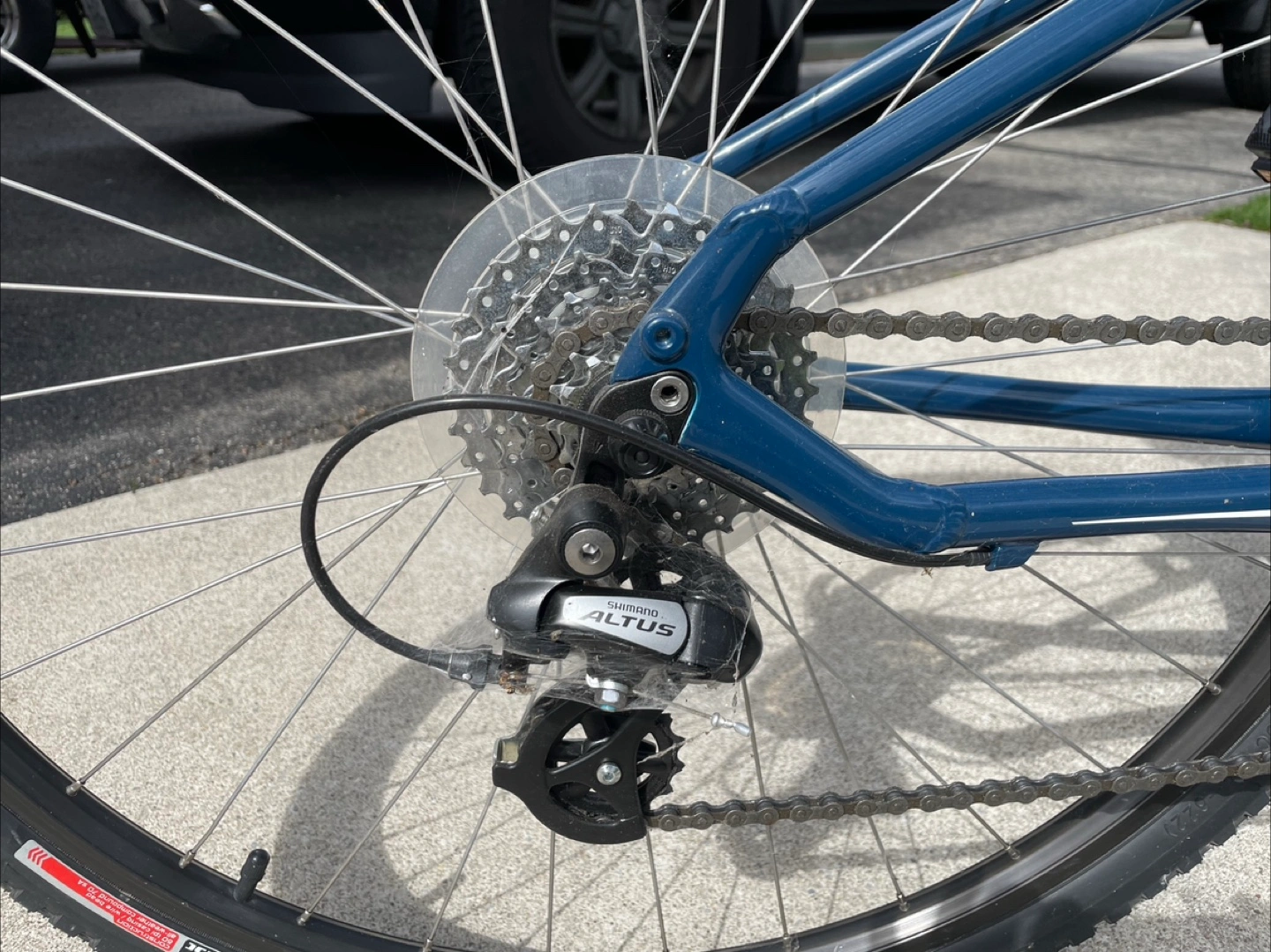 Women's hybrid bicycle. Aluminum frame. Shimano Altus components. 21 speeds. Bell and Kickstand included.