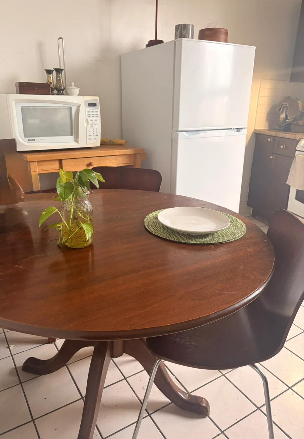 Buy & SellWooden Dining TableWooden Dining Table$100A round wooden dining table with a rich finish. It has a pedestal base for a classic look.Dimensions44 inchWHERE TO MEETDownsviewView MapSELLERverifiedMexicanitaDownsview37041 reviews0 chats·1 favorites·20 viewsSEND CHAT TO SELLERHi Mexicanita! I’m interested in your listing.Hi Mexicanita! I’m interested in your listing.Get the Karrot app to chatSign In to chat