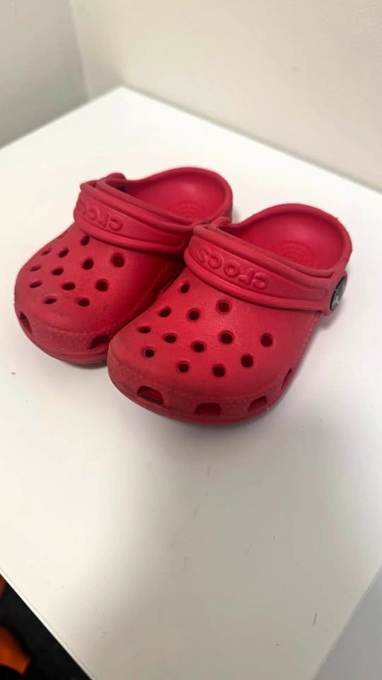 Genuine Crocs in the classic red (Pepper) color. Toddler size C4/C5 (fits approx. 12–18 months, or a small 2-year-old foot). Still lots of life left – no cracks, no blown-out holes. Normal play wear and dirt marks (they’re Crocs – they clean up super easy with soap & water or magic eraser). Heel straps intact and work great. New these are $40+. Asking only $10 – perfect backyard, beach, or daycare shoes. Pickup Markham.