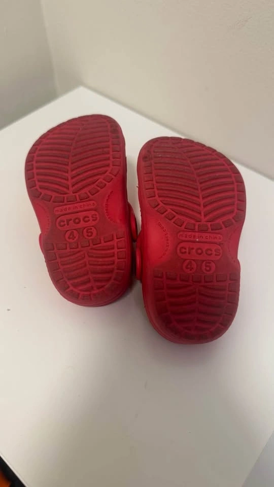 Genuine Crocs in the classic red (Pepper) color. Toddler size C4/C5 (fits approx. 12–18 months, or a small 2-year-old foot). Still lots of life left – no cracks, no blown-out holes. Normal play wear and dirt marks (they’re Crocs – they clean up super easy with soap & water or magic eraser). Heel straps intact and work great. New these are $40+. Asking only $10 – perfect backyard, beach, or daycare shoes. Pickup Markham.