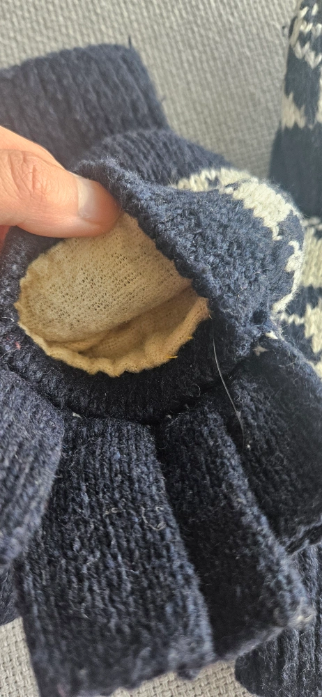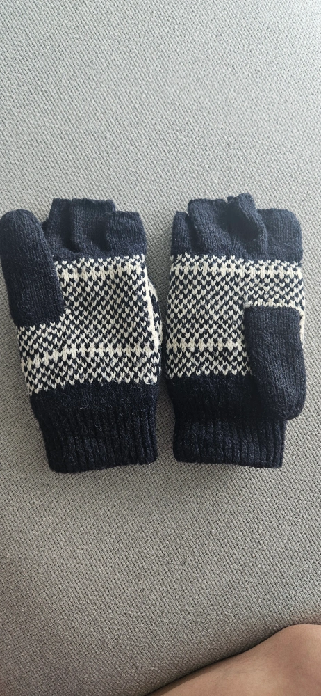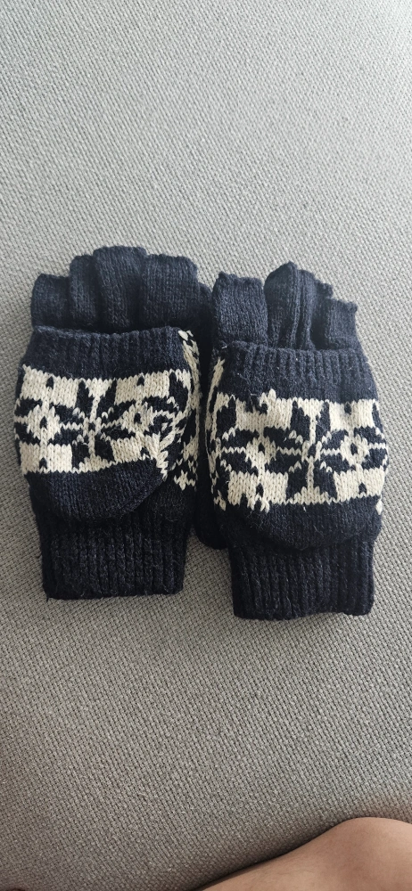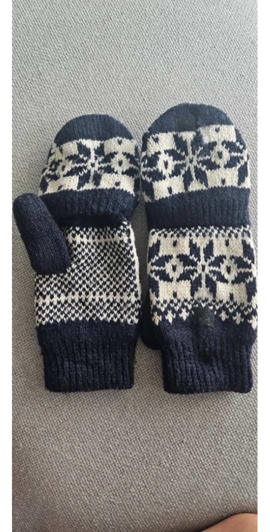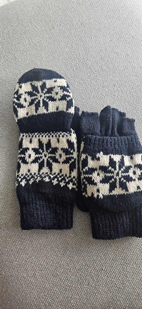 Warm and cozy mittens with a navy blue and white snowflake design. Perfect for winter! It is lined on the inside.