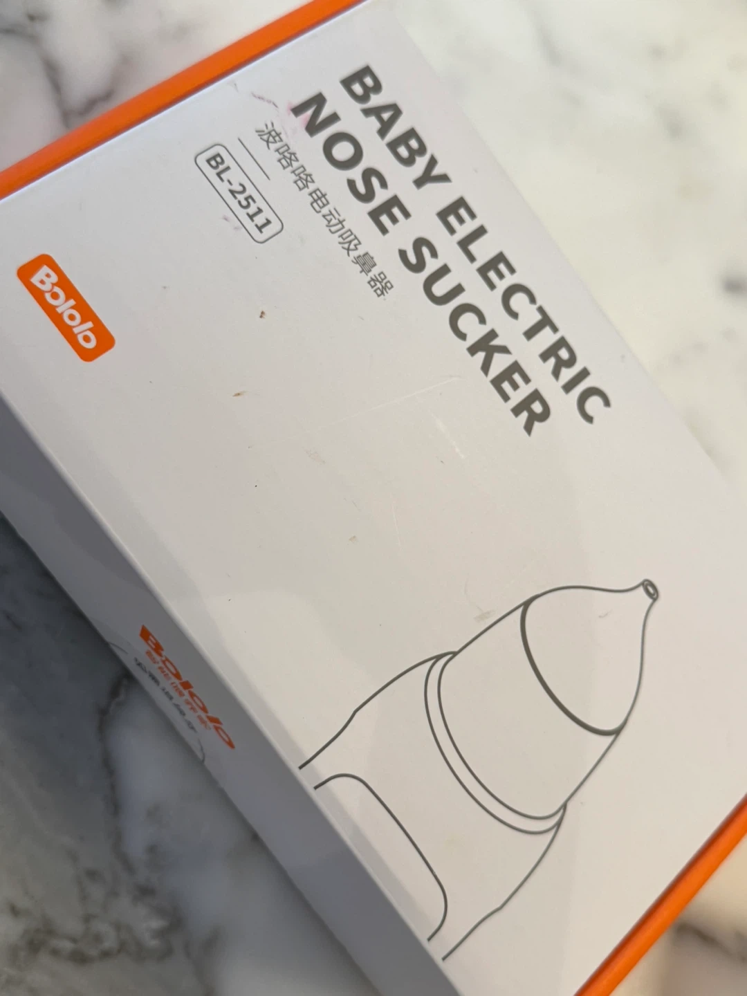 This is a Bololo brand electric nose sucker for babies. It comes with multiple attachments and a cleaning brush. It's designed for easy and gentle nasal clearing for little ones.