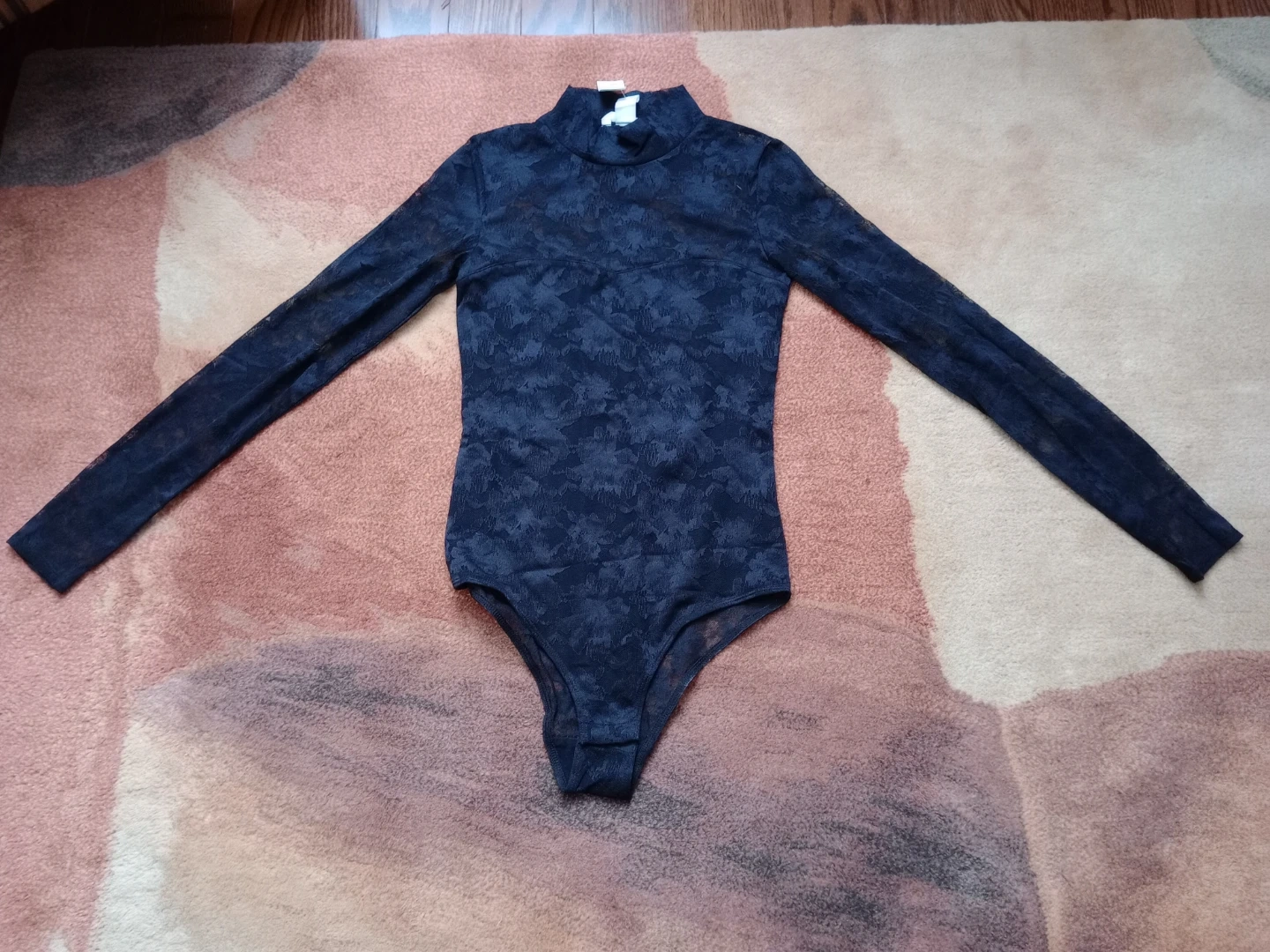 H&M Black Lace Mock Neck Bodysuit XS