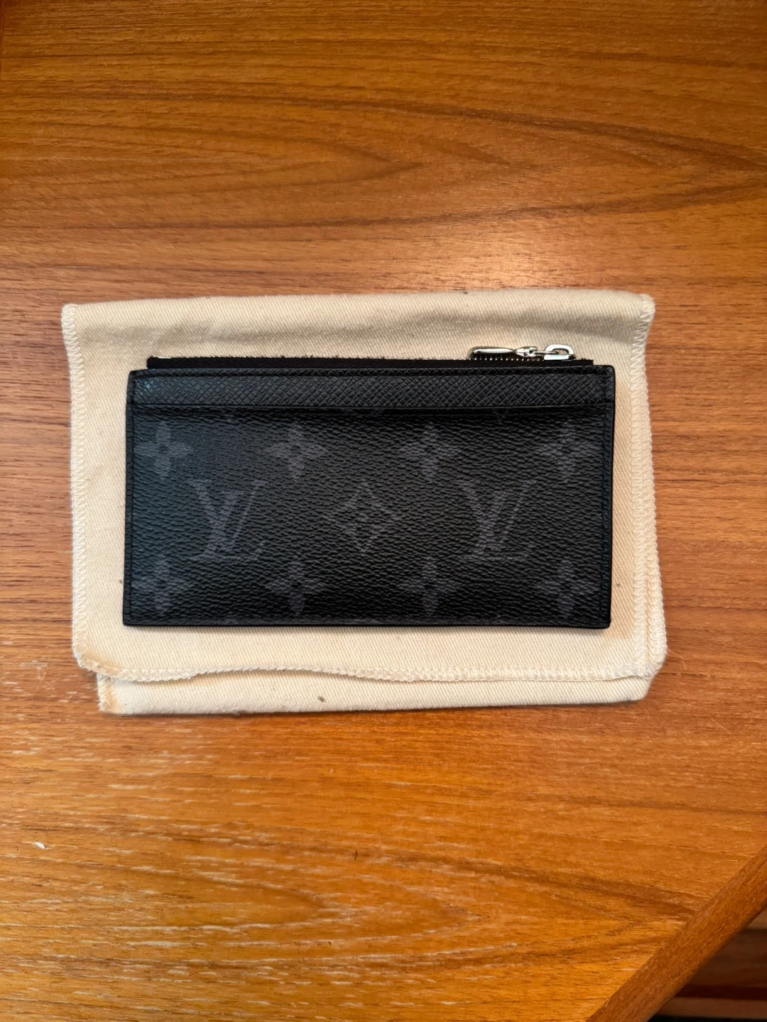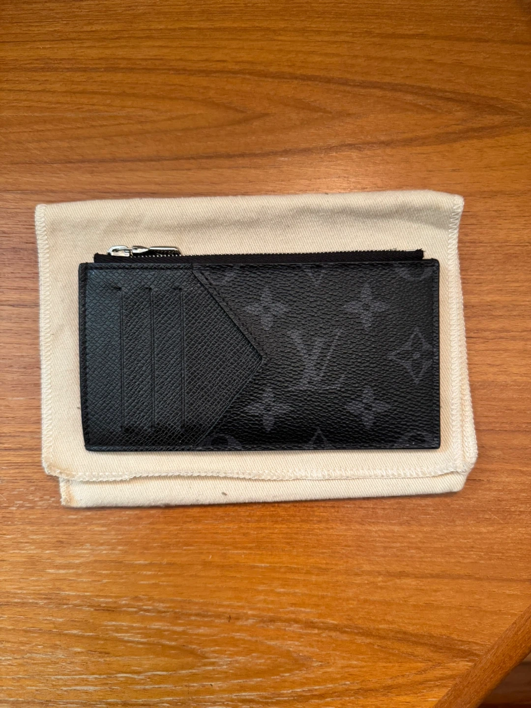 Selling a Louis Vuitton coin card holder in black. It's in great condition and comes with its original dust bag. The model number is M30271. Perfect for keeping your cards and coins organized in style!