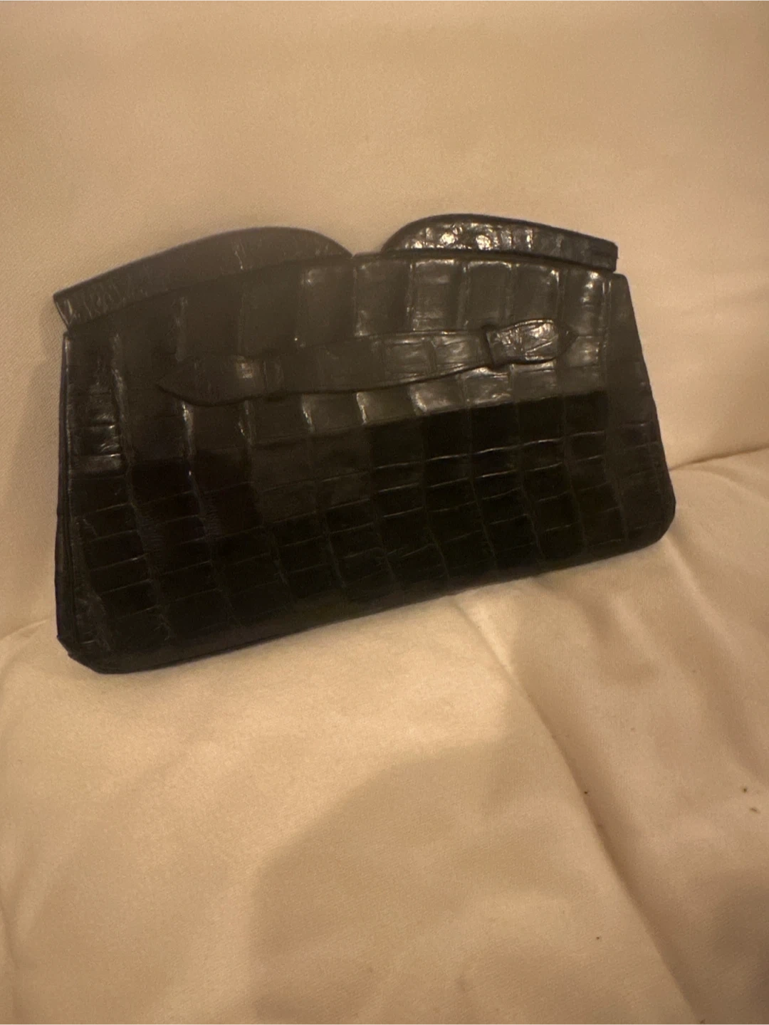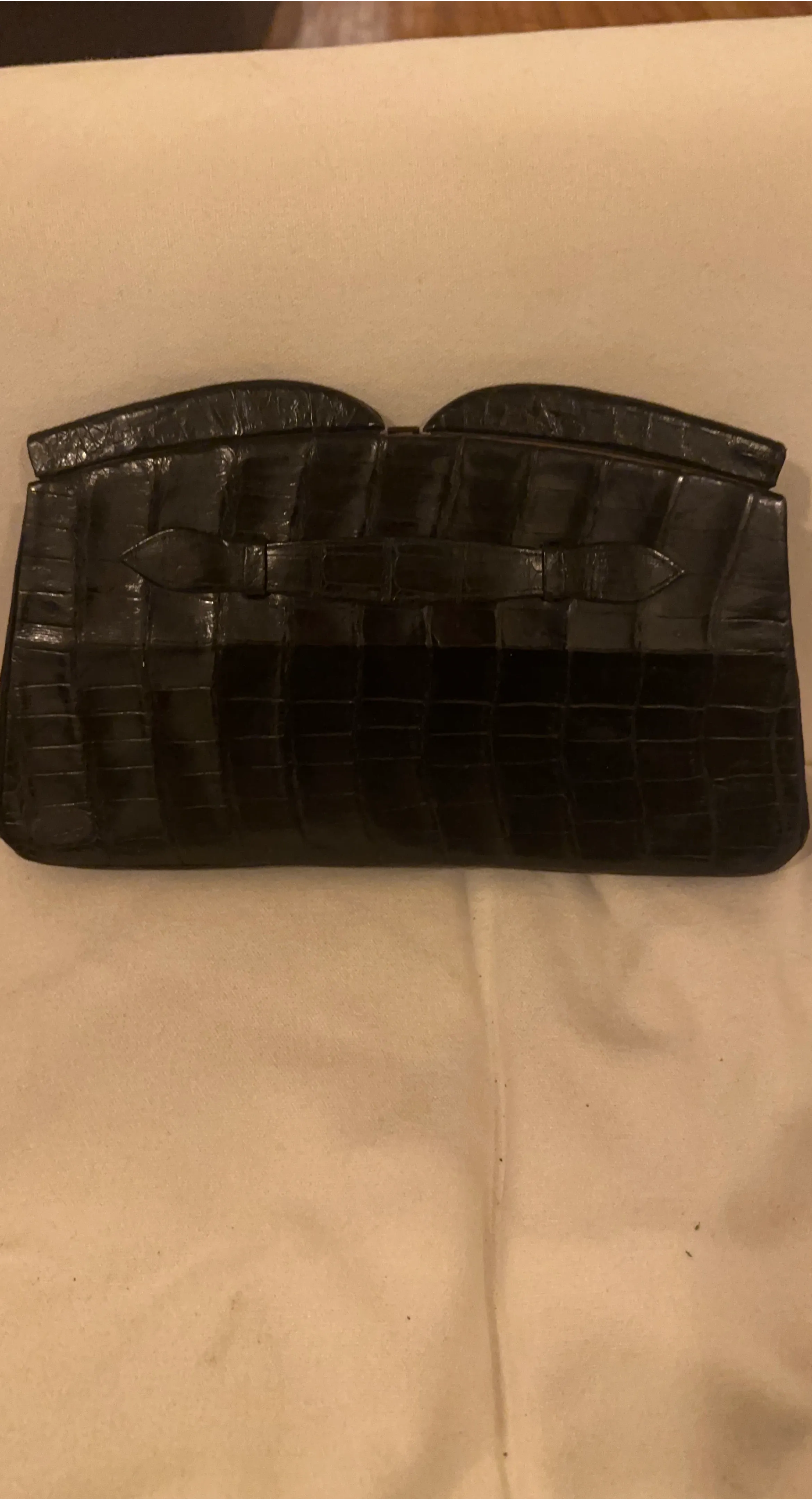 Selling a vintage black alligator clutch purse. It's in great condition and perfect for a night out or special occasion! The material is alligator leather, and the color is black
