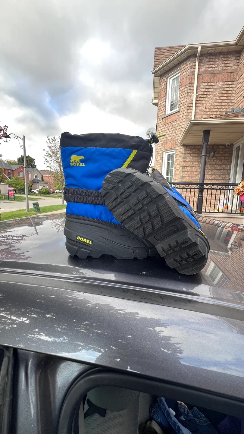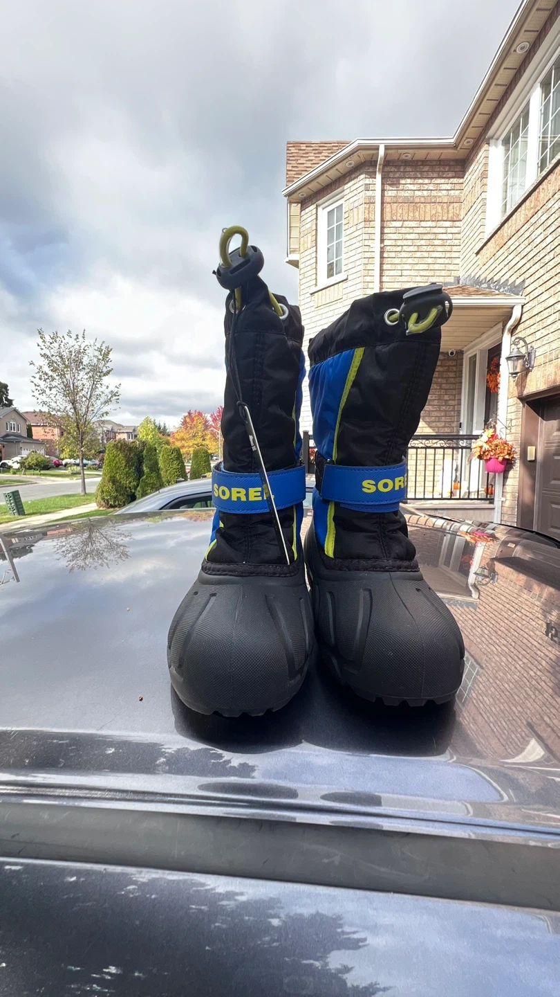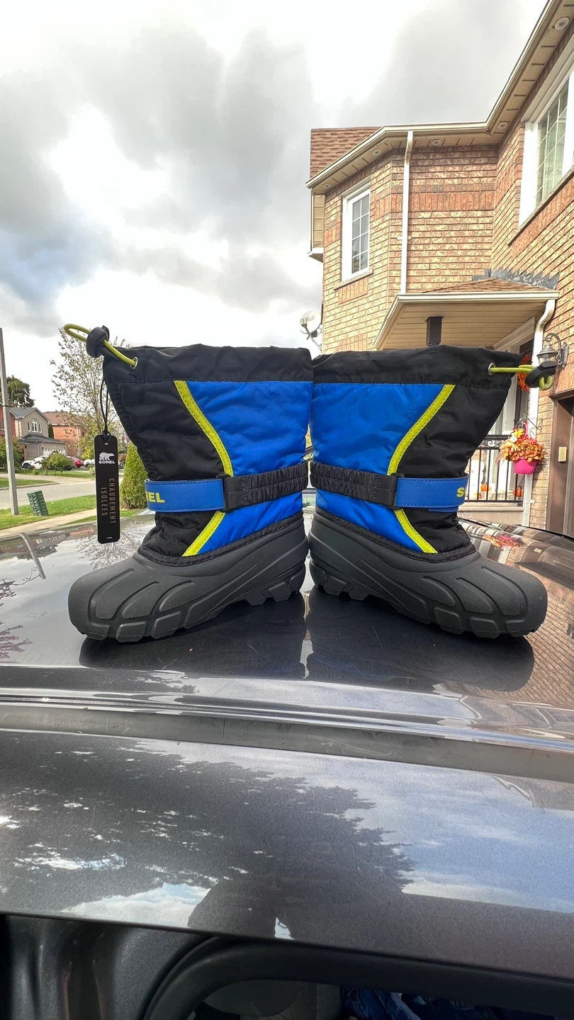 Sorel Snow Commander winter boots in size 13 US. These are perfect for keeping your little one's feet warm and dry during the snowy months. They feature a waterproof design and a secure fit to keep the snow out. Great condition!