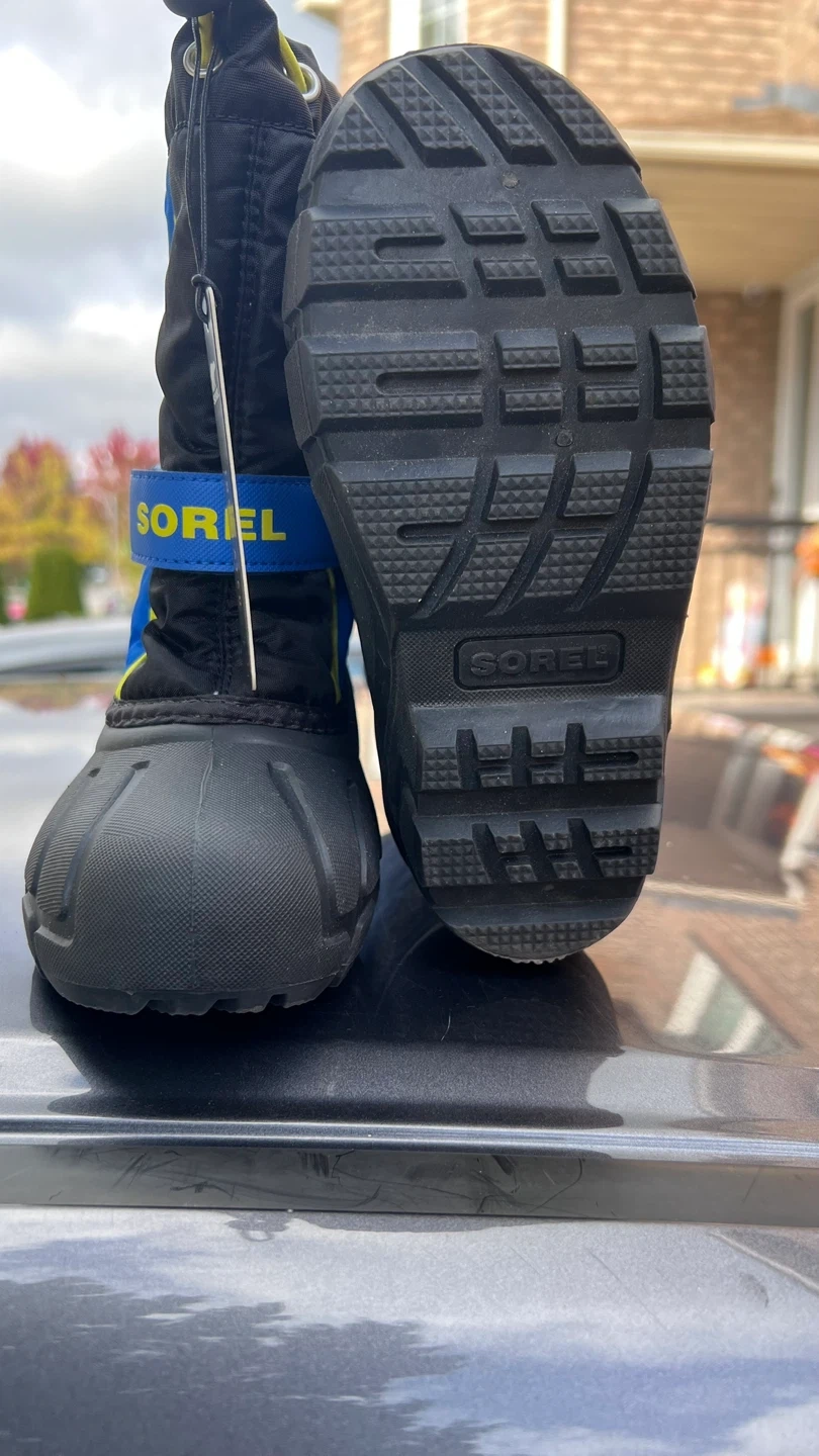 Sorel Snow Commander winter boots in size 13 US. These are perfect for keeping your little one's feet warm and dry during the snowy months. They feature a waterproof design and a secure fit to keep the snow out. Great condition!