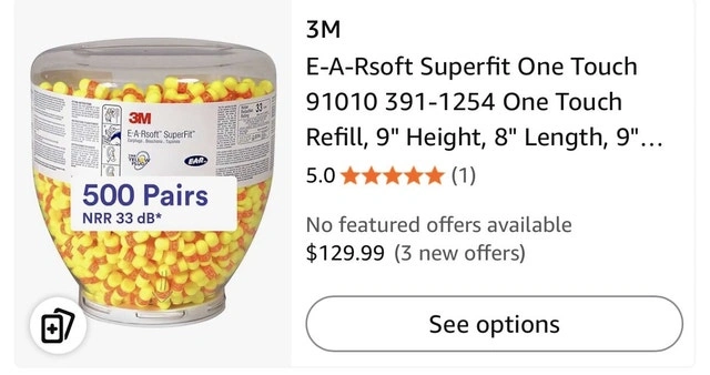 Brand new 3M One Touch Pro earplug dispenser with a refill of approximately 250 pairs of 3M E-A-Rsoft Superfit earplugs. Stand is new in box. Dispenser model: 391-0000. Earplugs model: 391-1254. Asking $95. If the ad is up, it's available!