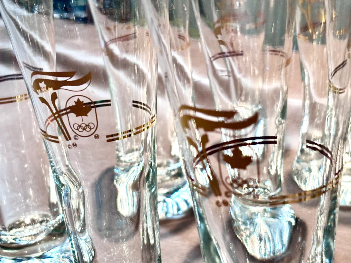 These glasses were commissioned by Petro-Canada to commemorate the 1988 Calgary Winter Olympics and the Olympic Torch Relay.