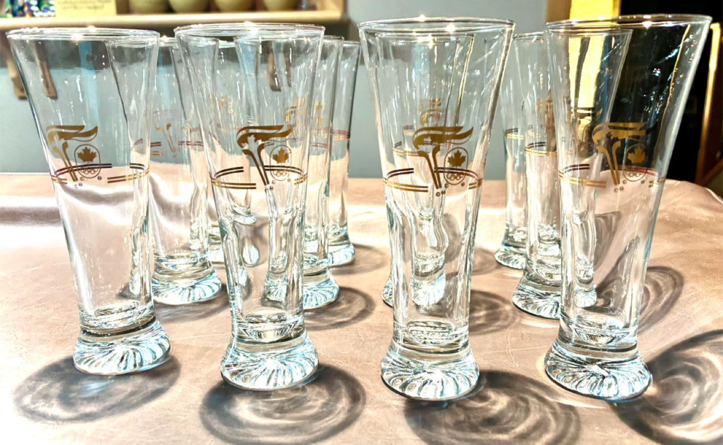These glasses were sold to help fund the Petro-Canada Olympic Torch Scholarship Fund.
