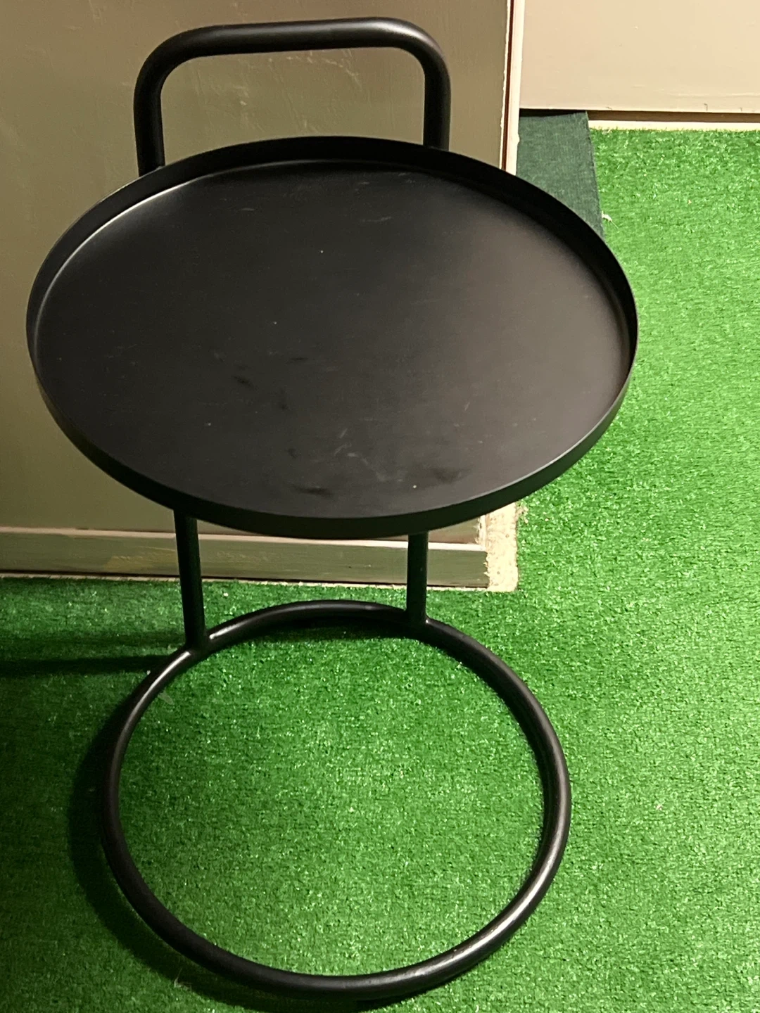 Selling a simple black metal side table. It's in great condition and would be perfect next to a chair or bed. The round top and sleek design make it a stylish addition to any room!