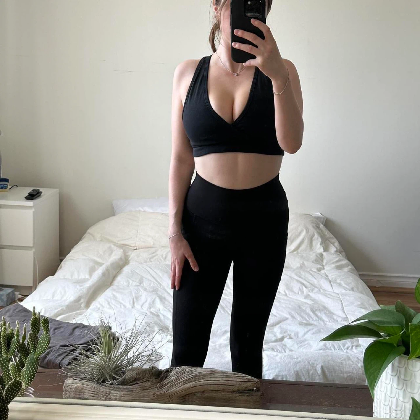 black stretch, pocket detail, high-waisted, fitted, athleisure, lounge wear, sporty, comfortable, minimal, sleek