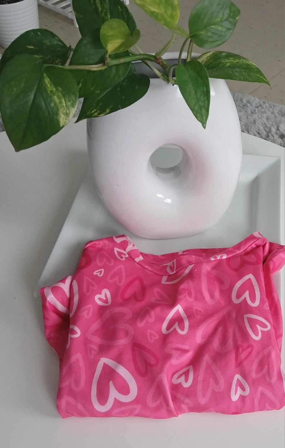 Kids Pink Heart Print T-Shirt and Blue Distressed Jeans Size 12