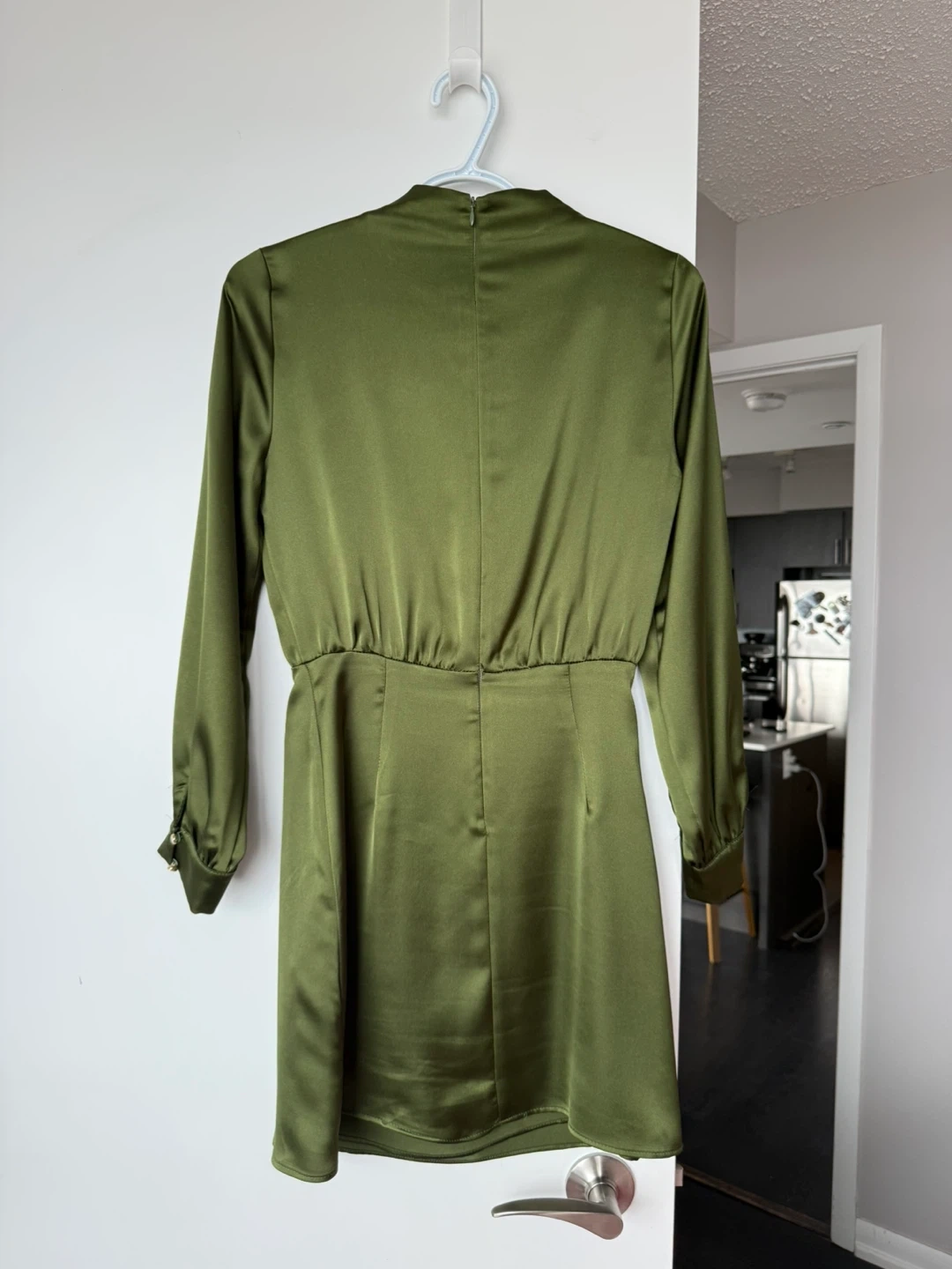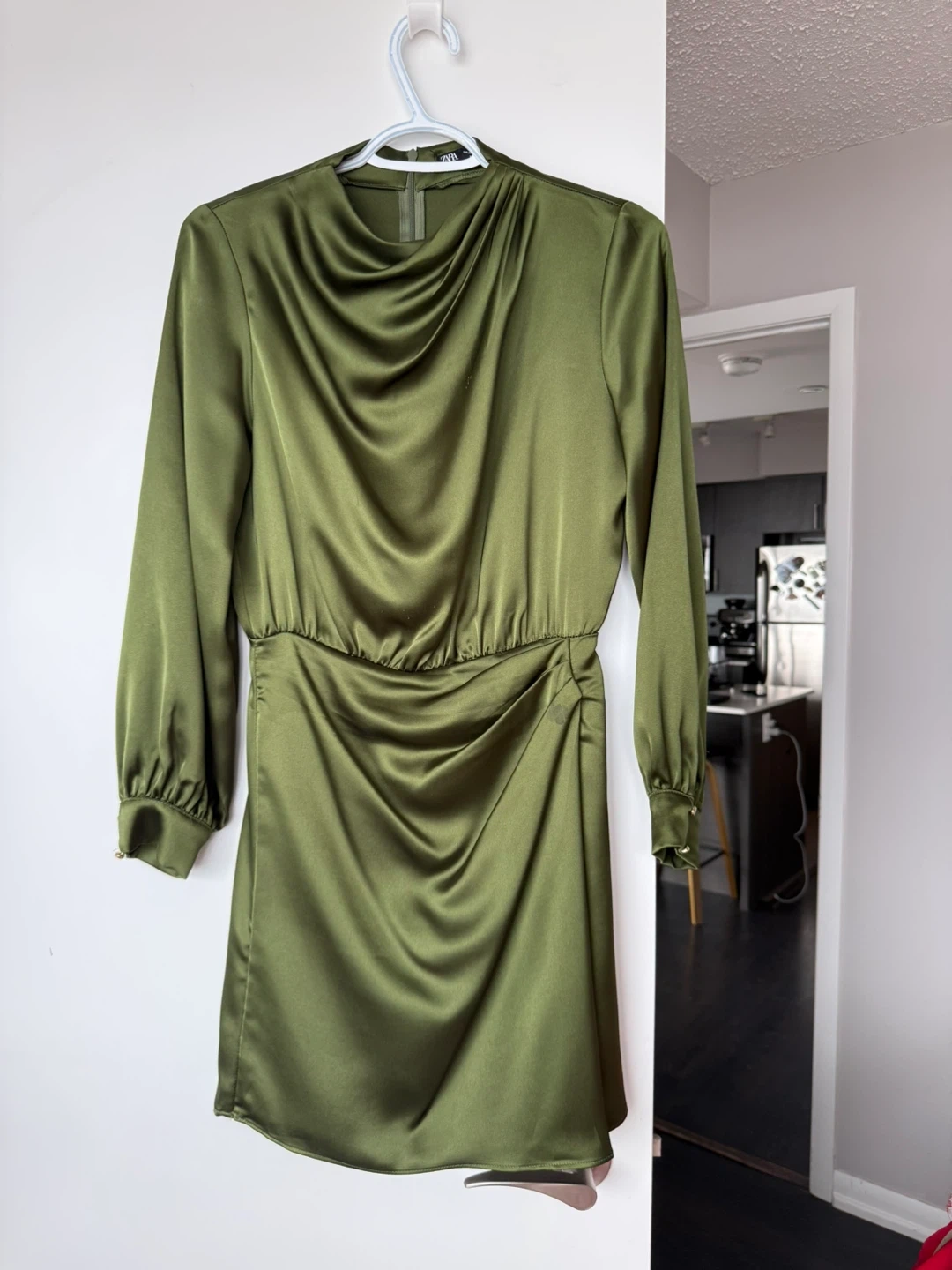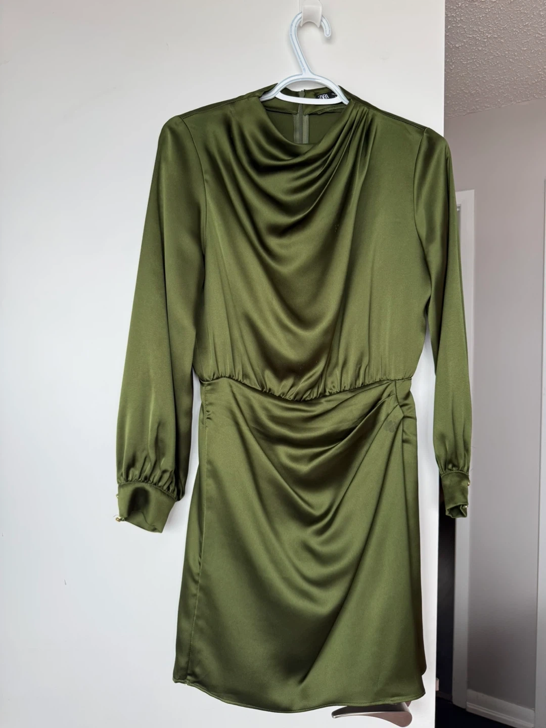 Buy & SellGreen Satin Ruched Mini DressGreen Satin Ruched Mini Dress$55This is a ZARA green satin dress. It has long sleeves and a ruched detail on the side. Great for a night out!ConditionLike newSizeEU: S - US: XSBrandZARAWHERE TO MEETLawrence Allen CenterView MapSELLERverifiedMarianneLawrence West994 reviews0 chats·0 favorites·17 viewsSEND CHAT TO SELLERHi Marianne! I’m interested in your listing.Hi Marianne! I’m interested in your listing.Get the Karrot app to chatSign In to chat