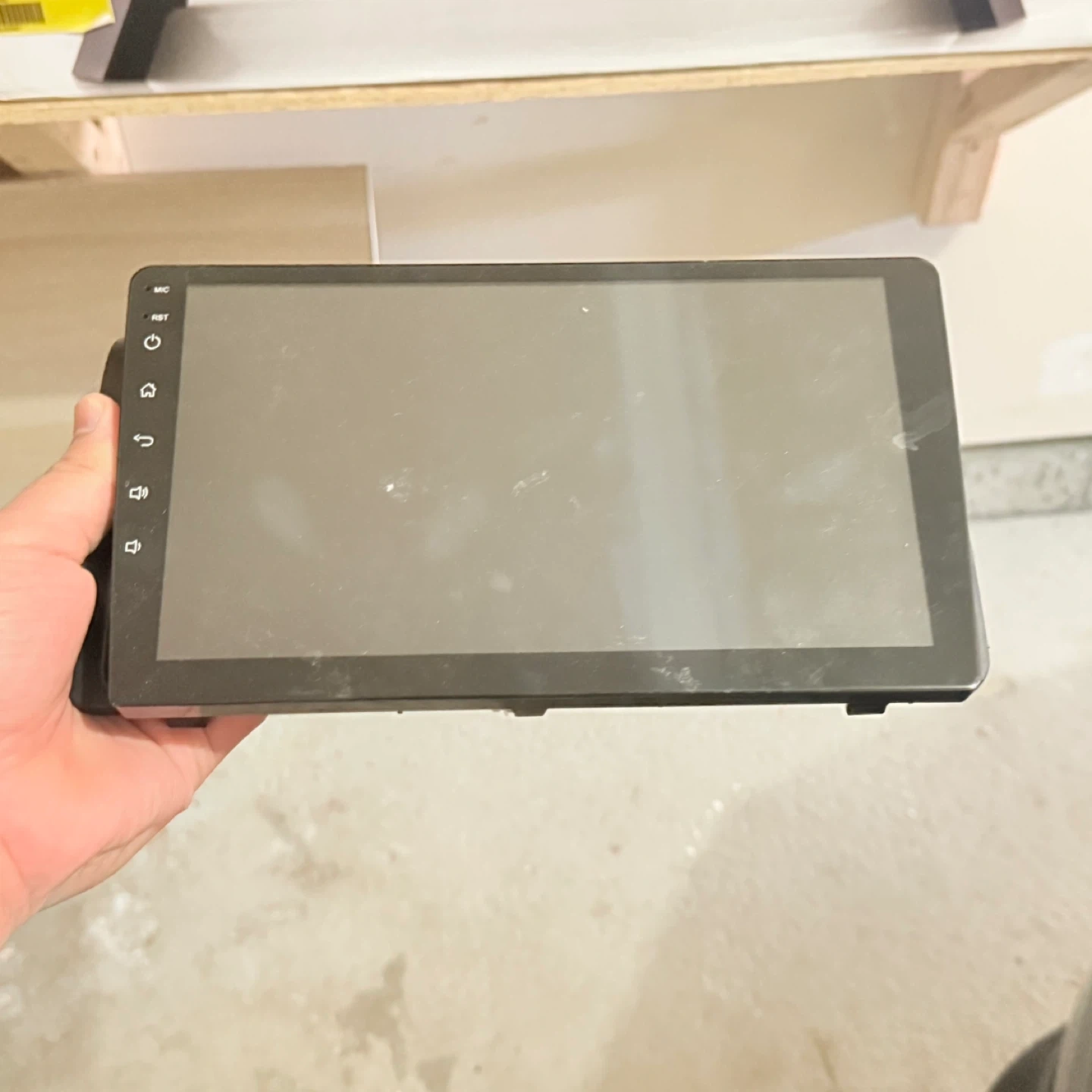 This is a car stereo head unit with a touchscreen display. It features a built-in fan for cooling and various connection ports on the back. Perfect for upgrading your car's audio system!