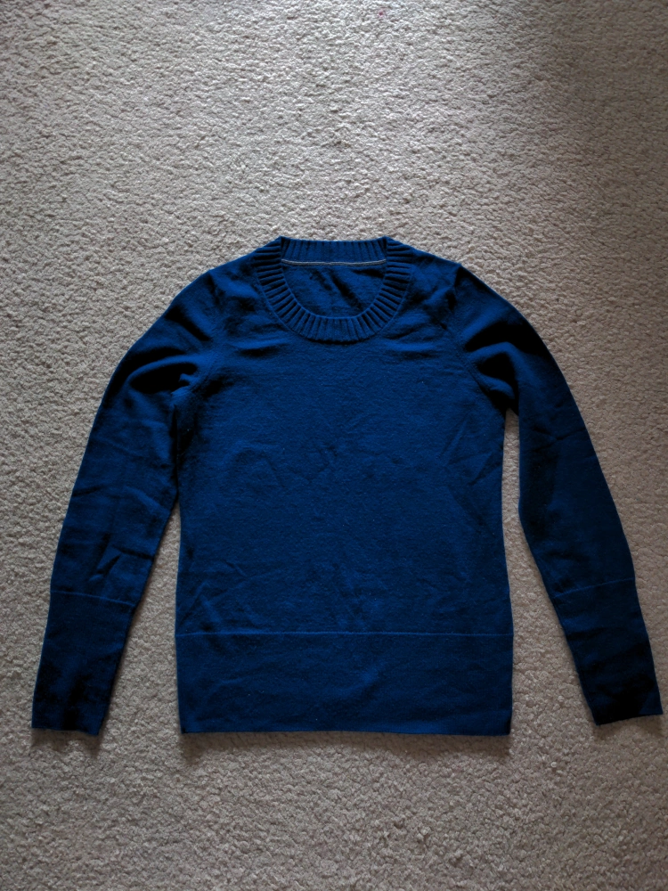 Soft blue sweater. Long sleeves. Crew neck. Relaxed fit.