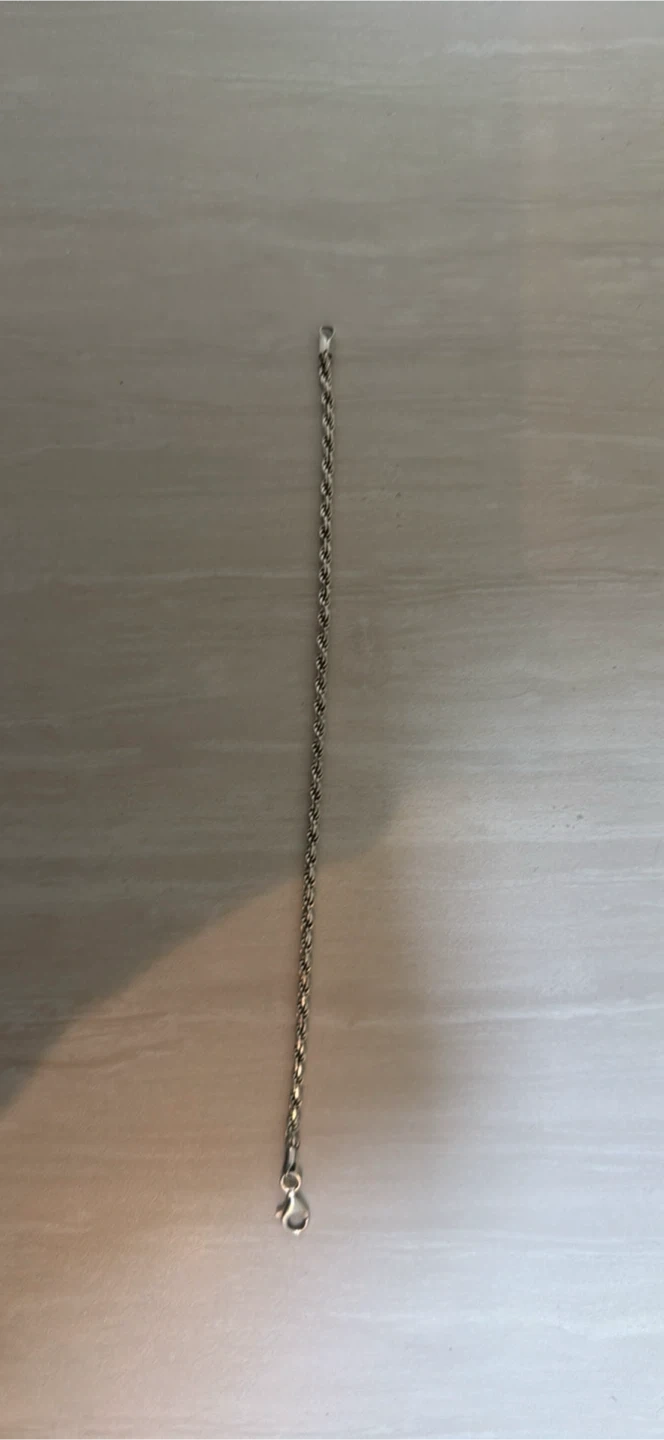 A simple 925 silver rope chain bracelet. It's secured with a lobster clasp. This chain style is versatile for everyday wear.
