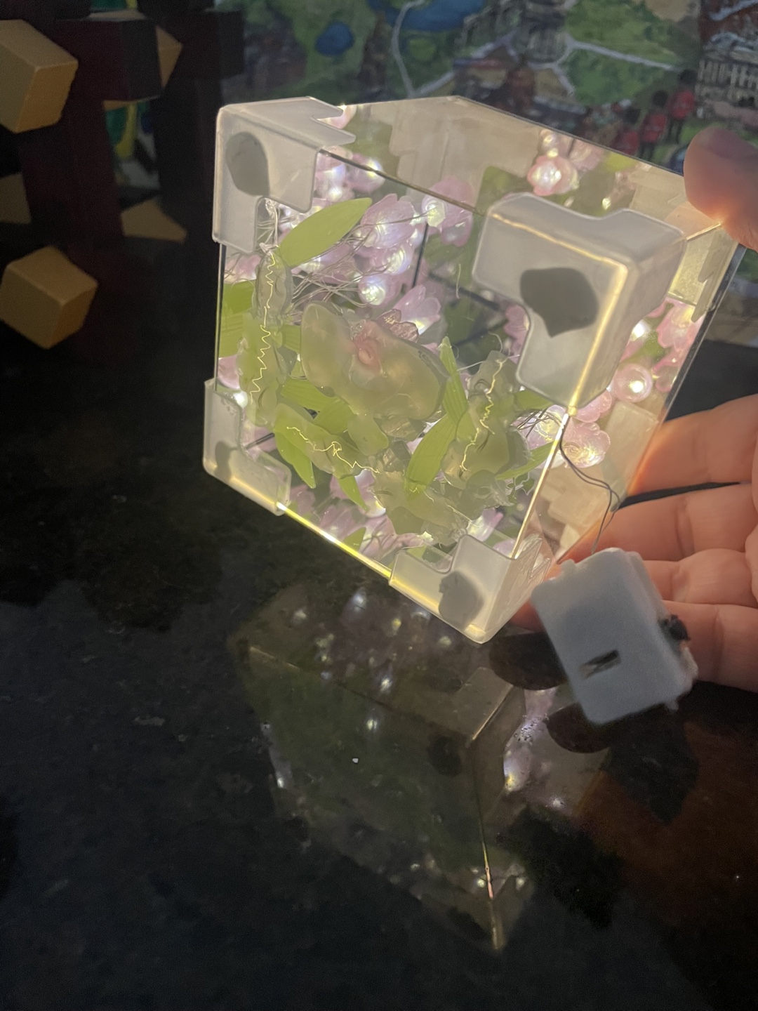 #freecycle LED Light-Up Cube with Pink Flowers
