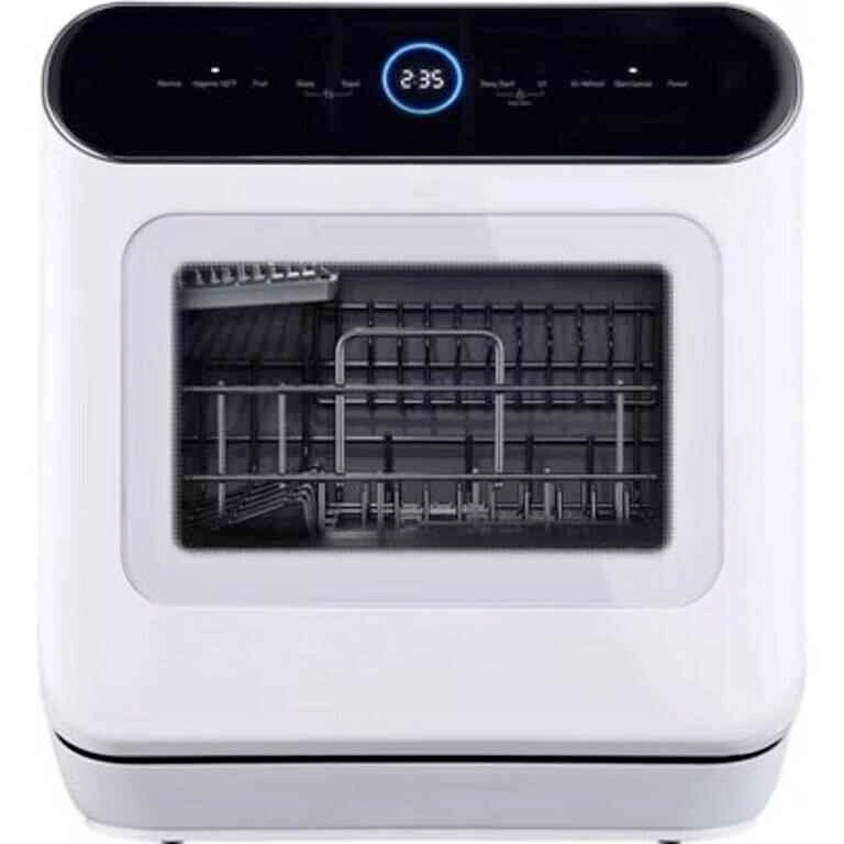 Brand new, complete with racks and pitcher, hoses, and cords. Can be hooked up to a water supply or you can pour water in the top. Just needs somewhere to discard wash water (like a sink).