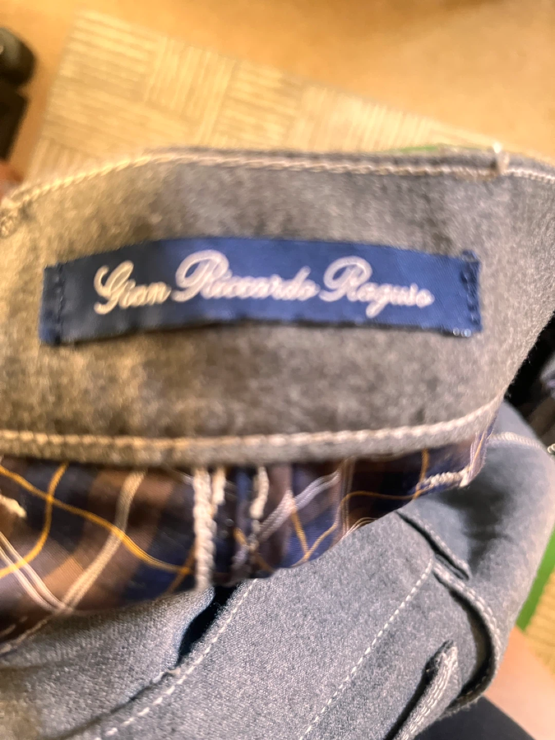 Selling a pair of Gian Riccardo Raguso wool pants in size 50. These pants are made in Italy and are 100% pure wool! They feature a stylish design and are perfect for keeping warm in the cooler months. Dry clean only to keep them in great shape
