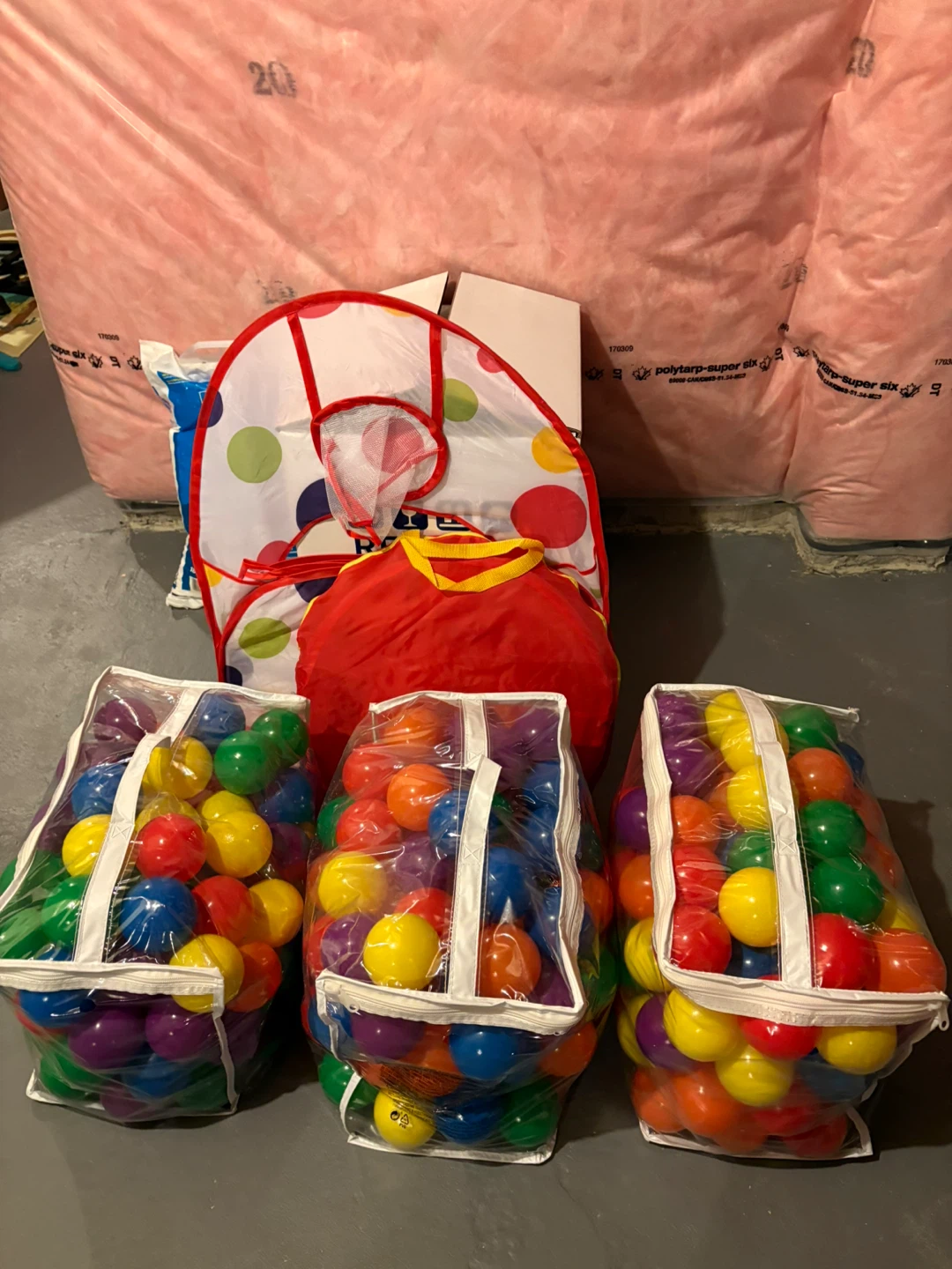 This play tent set is perfect for keeping the little ones entertained! It includes a tent, tunnel, and ball pit, all in a fun and colourful polka dot design. It's great for indoor or outdoor play and provides hours of fun!