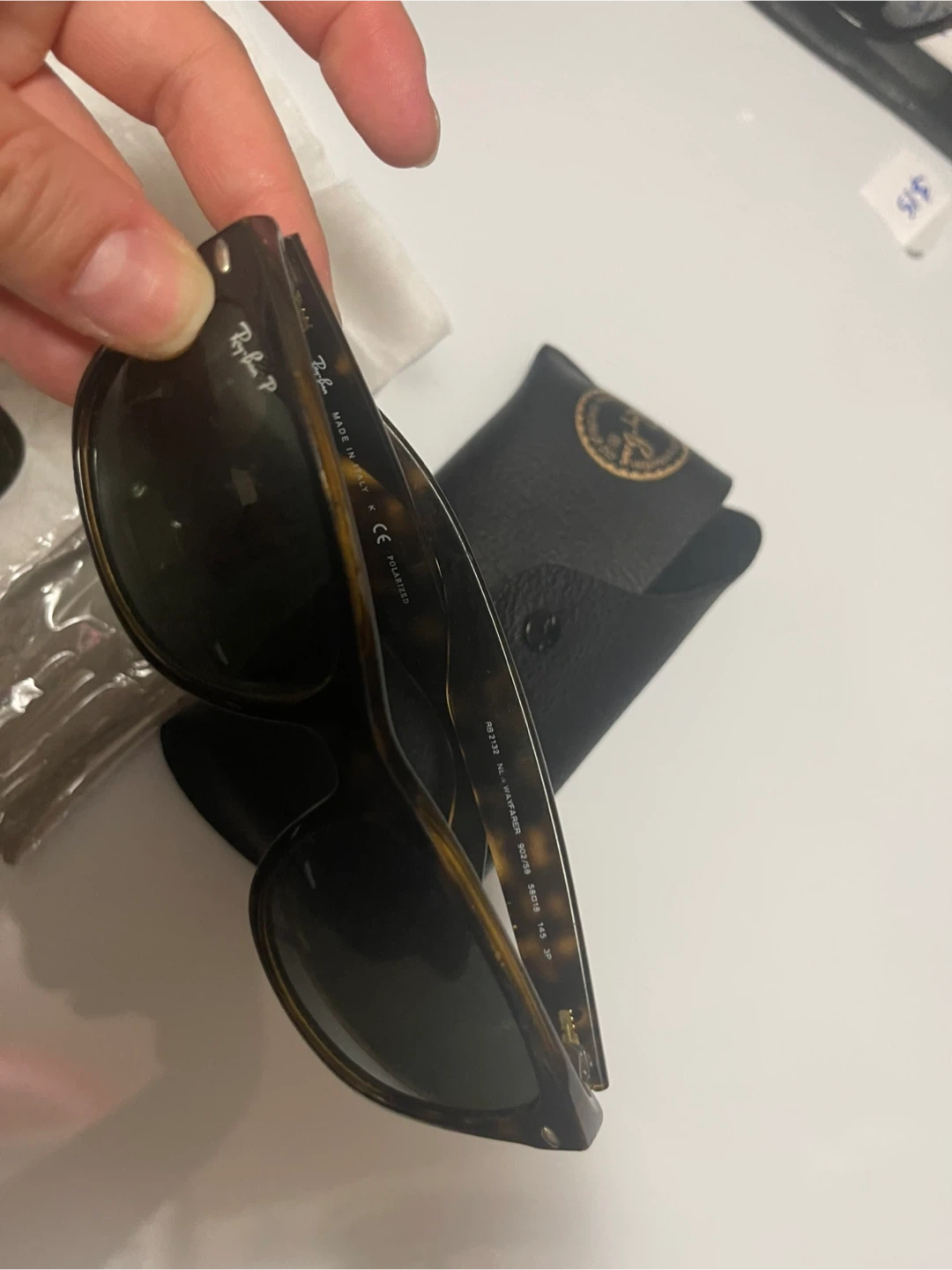 Ray-Ban RB2132 New Wayfarer sunglasses with tortoiseshell frames. Includes original case, cleaning cloth, and two sets of lenses. Polarized lenses offer great glare reduction. Brand new. Purchased a while ago. Misplaced them so never really got to use them. Looking to sell. Pick up Dundas and Spadina. Cash only.
