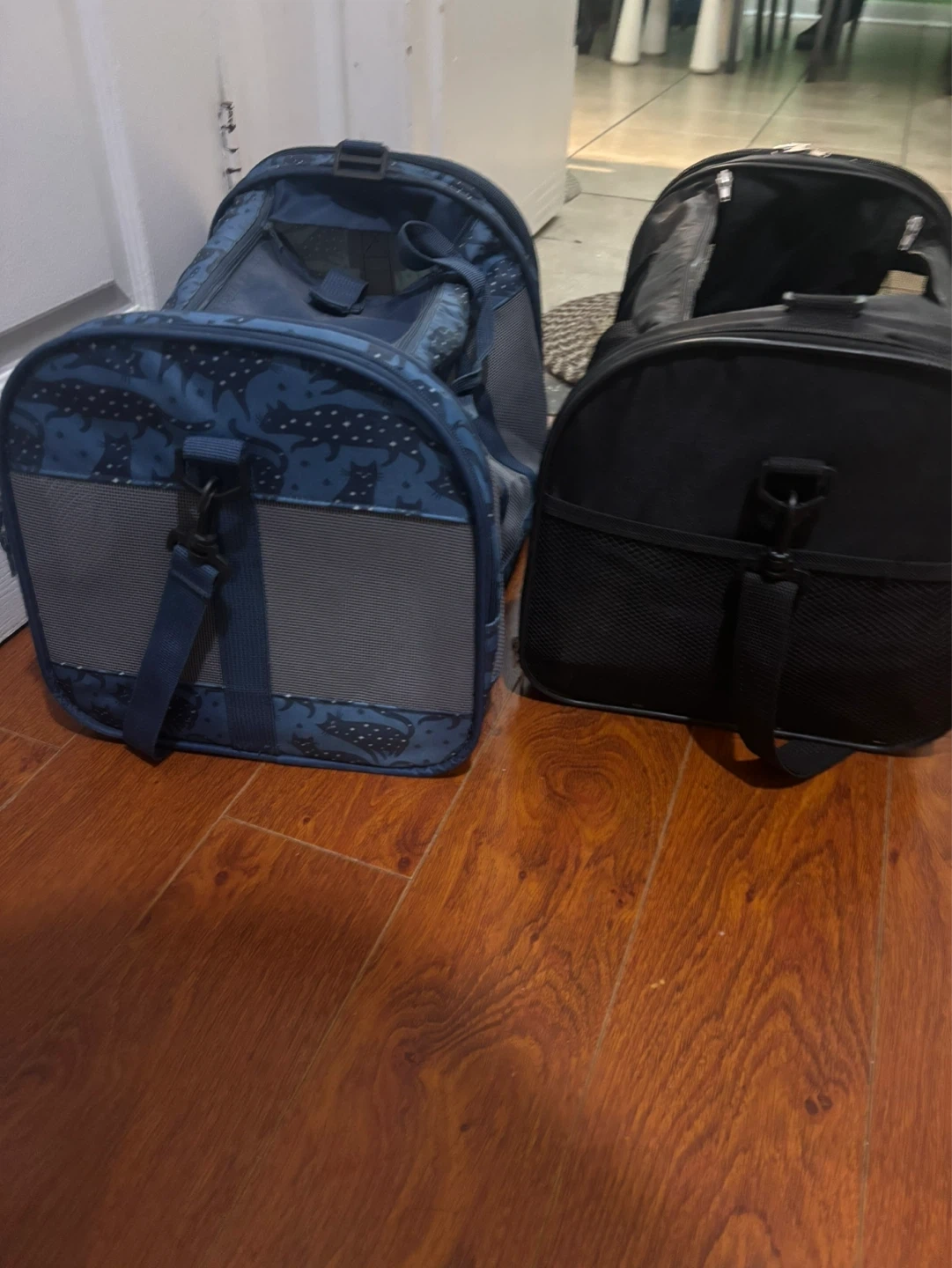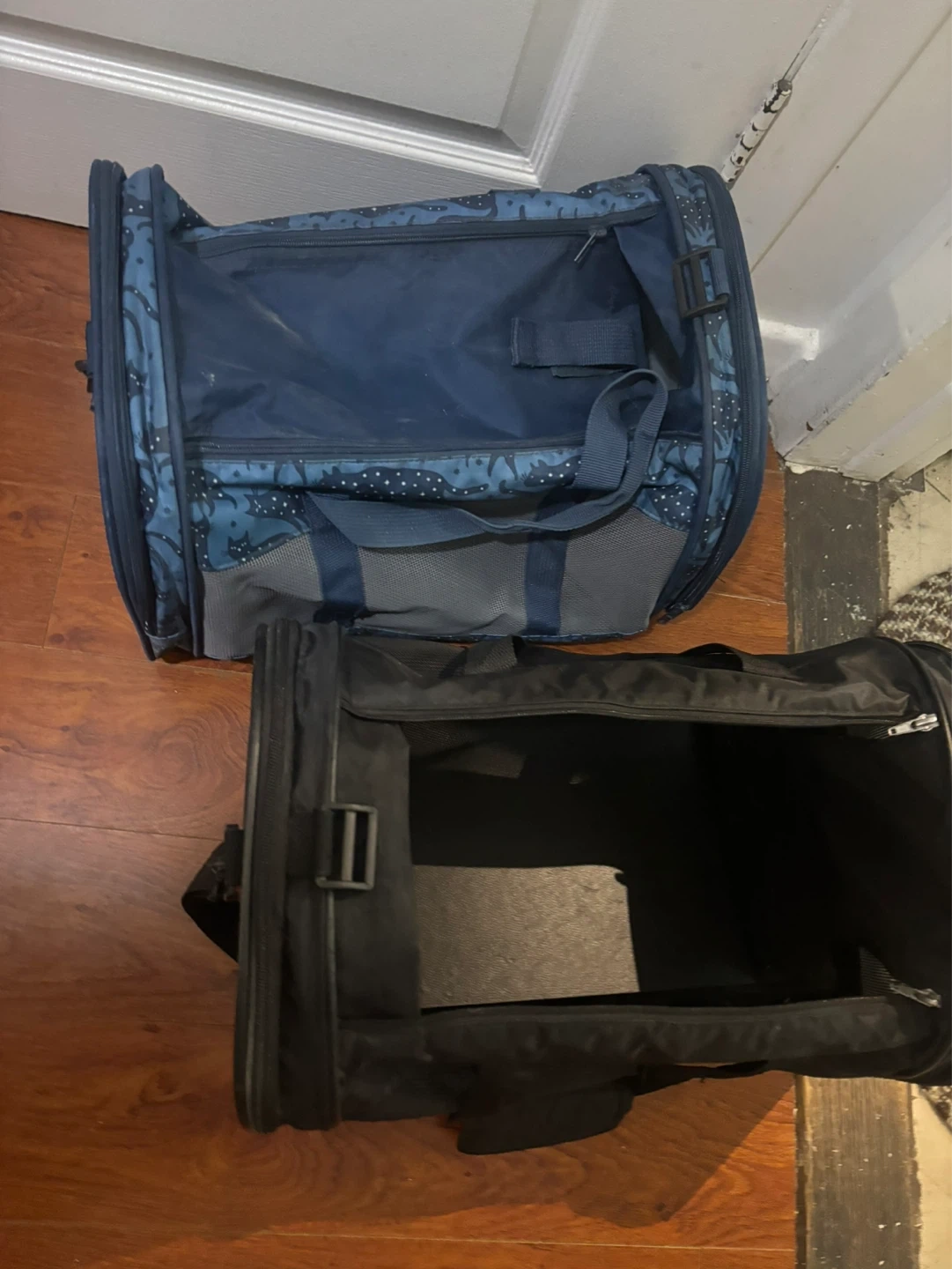 2 Pet Carriers - Blue with Cat Pattern & Black