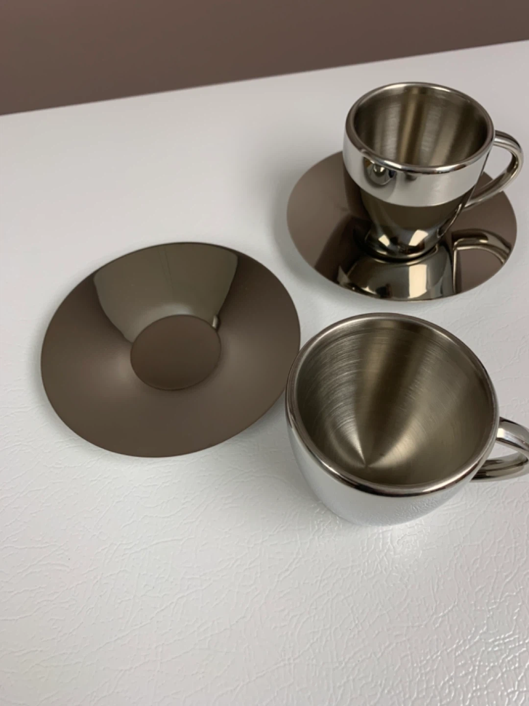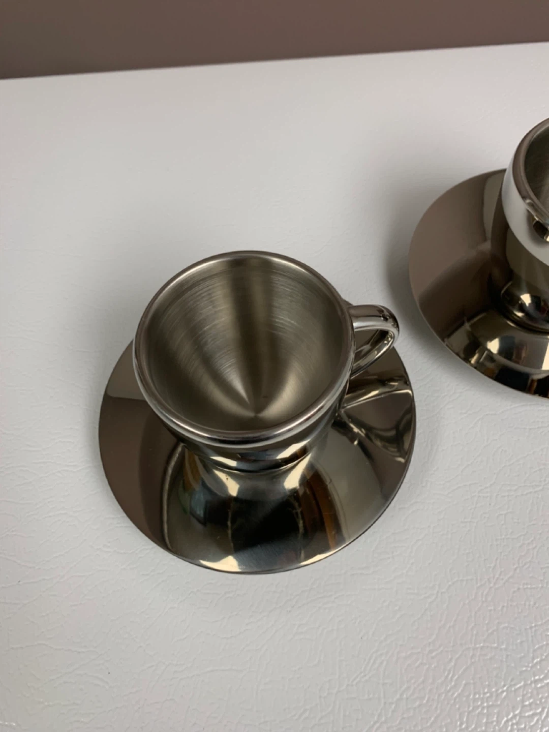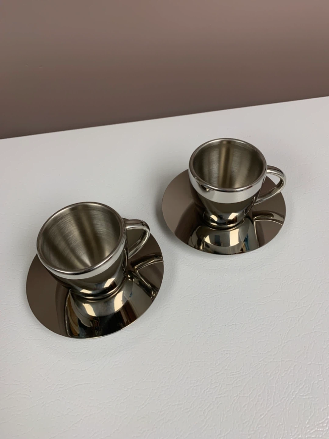 š„Set of 2 Stainless Steel Espresso Cups with Saucers