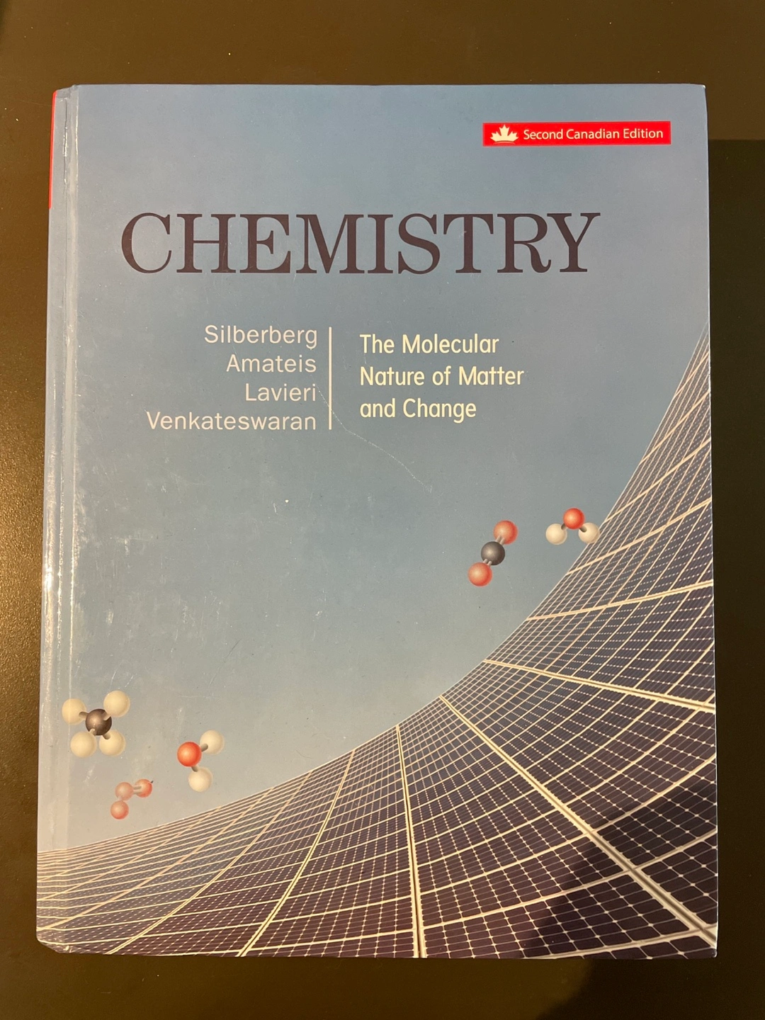 Second Canadian edition textbook. Does NOT include access code. Used for U of A first year chemistry courses. Second edition is nearly identical to third edition (which is the most recent). This book is in excellent condition with minimal signs of use.