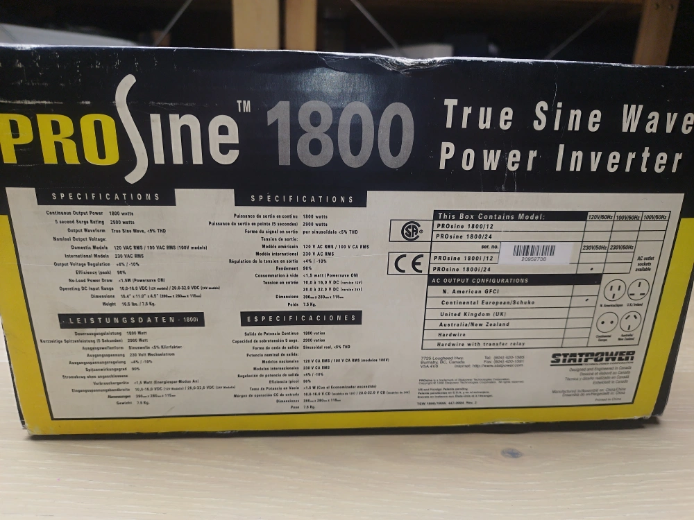 BNIB StatPower ProSine 1800 True Sine Wave Power Inverter