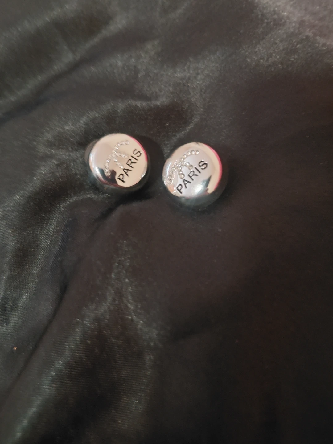 Silver "Paris" Stud Chanel Earrings