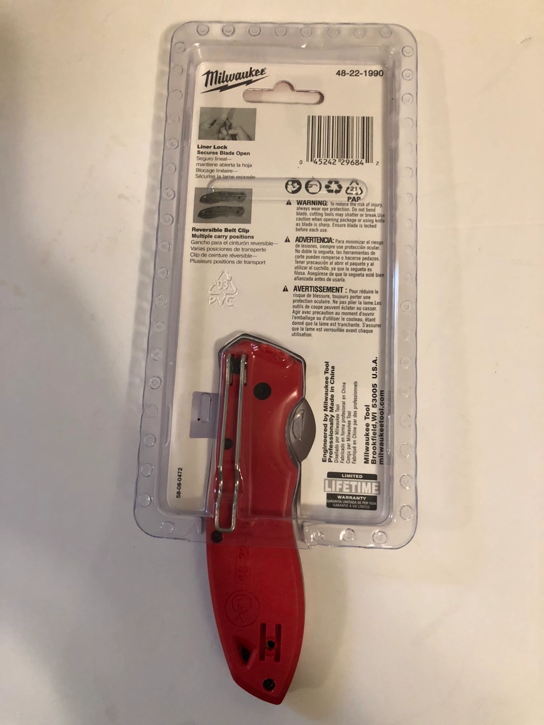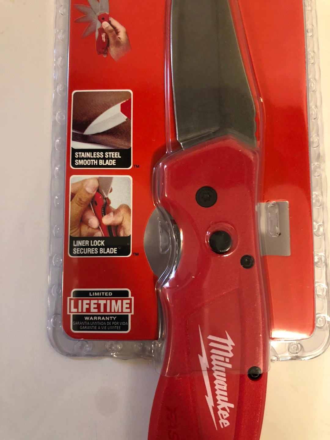 Selling a brand new Milwaukee FASTBACK Flip Knife, still in its original packaging! This knife features a stainless steel smooth blade and a liner lock to secure the blade. It also has a reversible belt clip for multiple carry positions. It's engineered by Milwaukee Tool and designed for professionals.