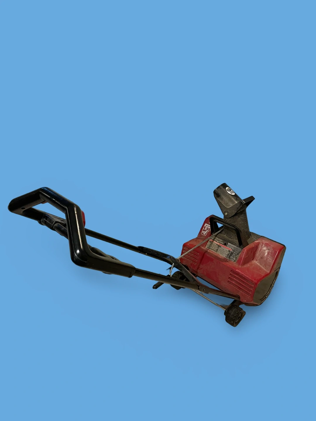 Toro Power Curve 1800 electric snow blower. Model 38025. Red and black plastic construction. This snow blower is ideal for clearing sidewalks and driveways. Needs power cord.