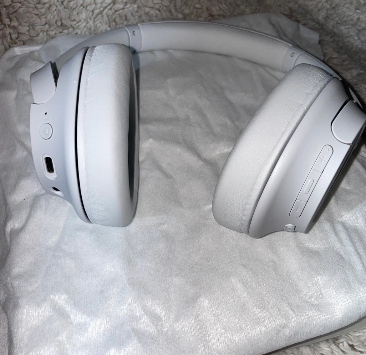 • Design: white over ear headphones, easy accessible buttons to connect to devices & control volume, adjustable headset