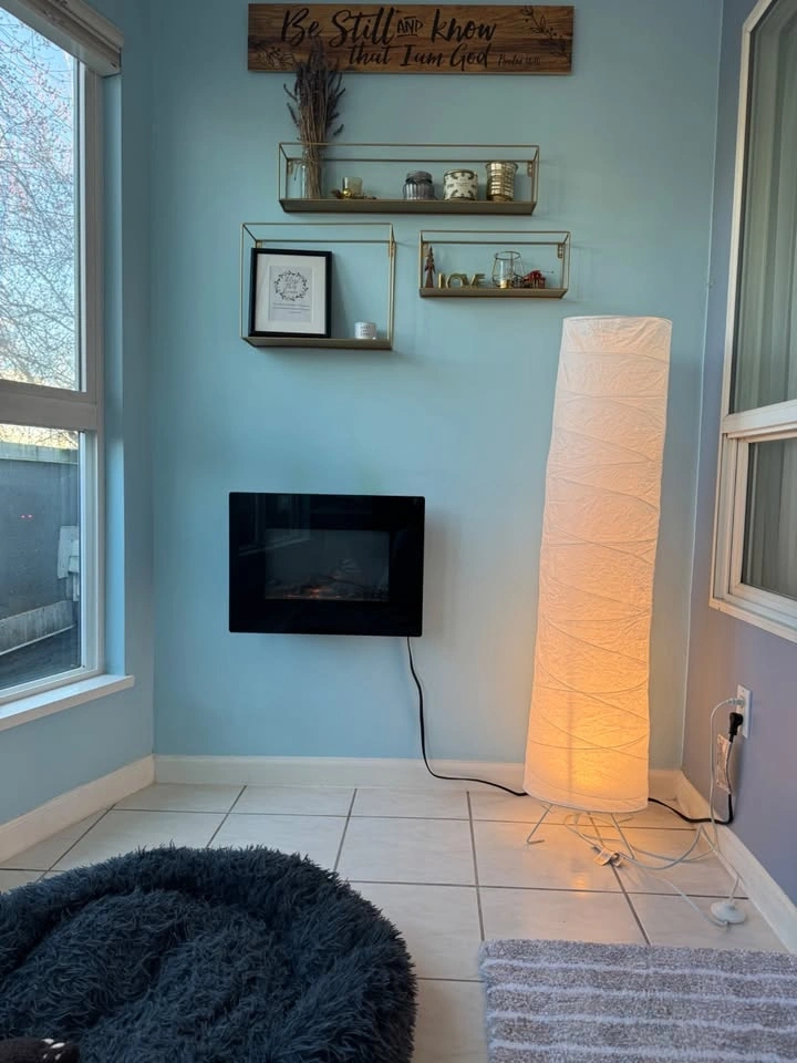 • Furnished: Murphy bed with mattress, loveseat, TV, electric fireplace, and kitchenware.