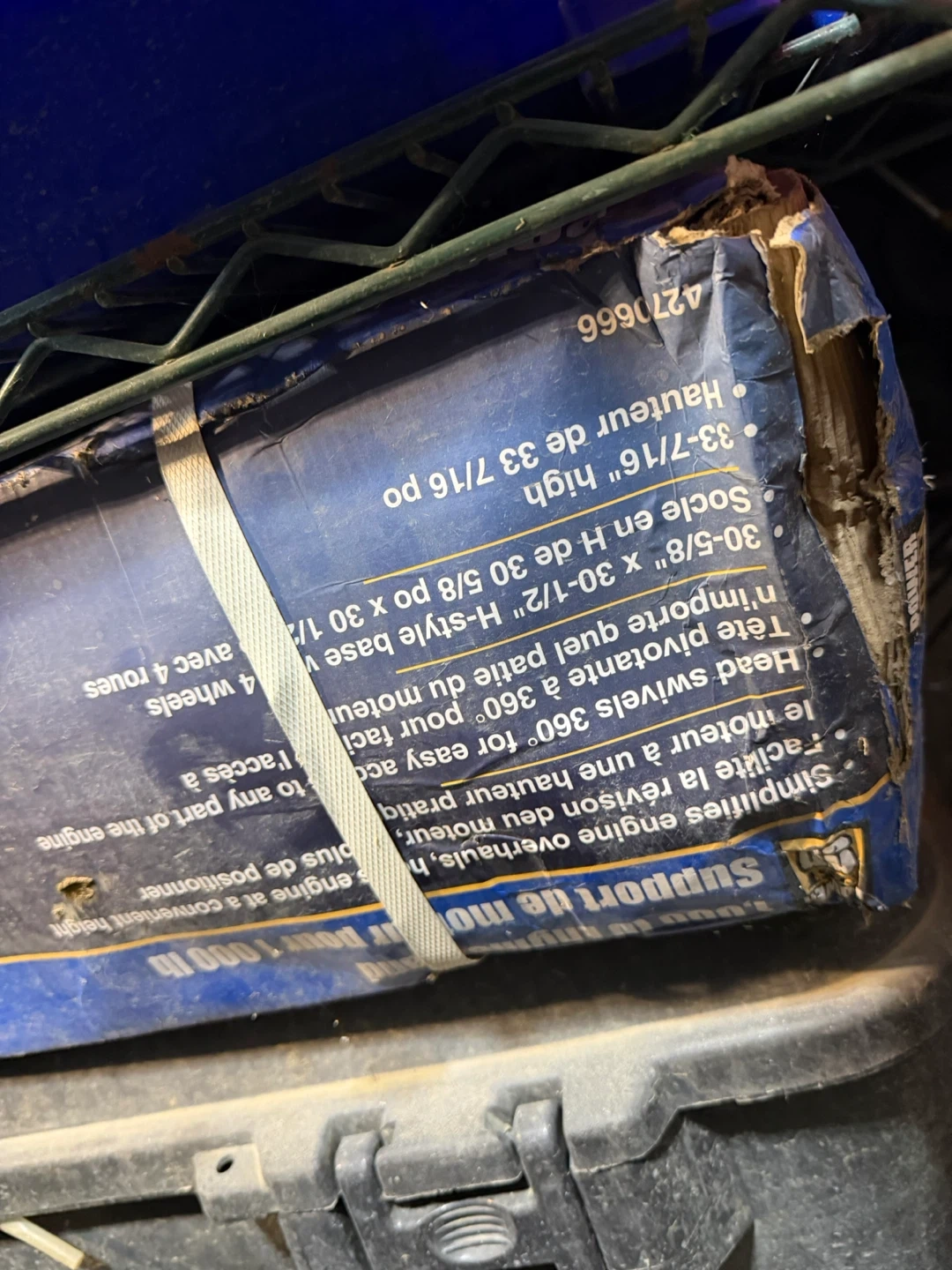 This engine support stand makes engine overhauls a breeze. It's 33-7/16" high and features a head that swivels 360° for easy access. It includes 4 wheels for mobility. Supports engines up to 1000 lb.