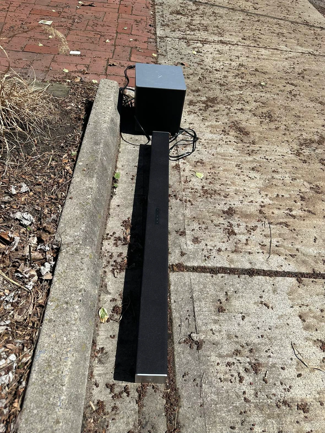 Have left this free speaker system on the north sidewalk of Blong avenue (near pape and queen). We bought a new one and don’t have a need for this one. Free for anyone that wants to come pick it up, you don’t need to message.