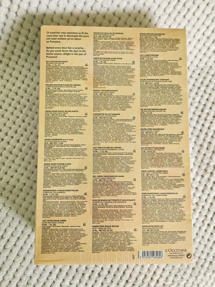 An L'Occitane Advent calendar with 24 surprise items behind each door. β¨οΈππ₯°