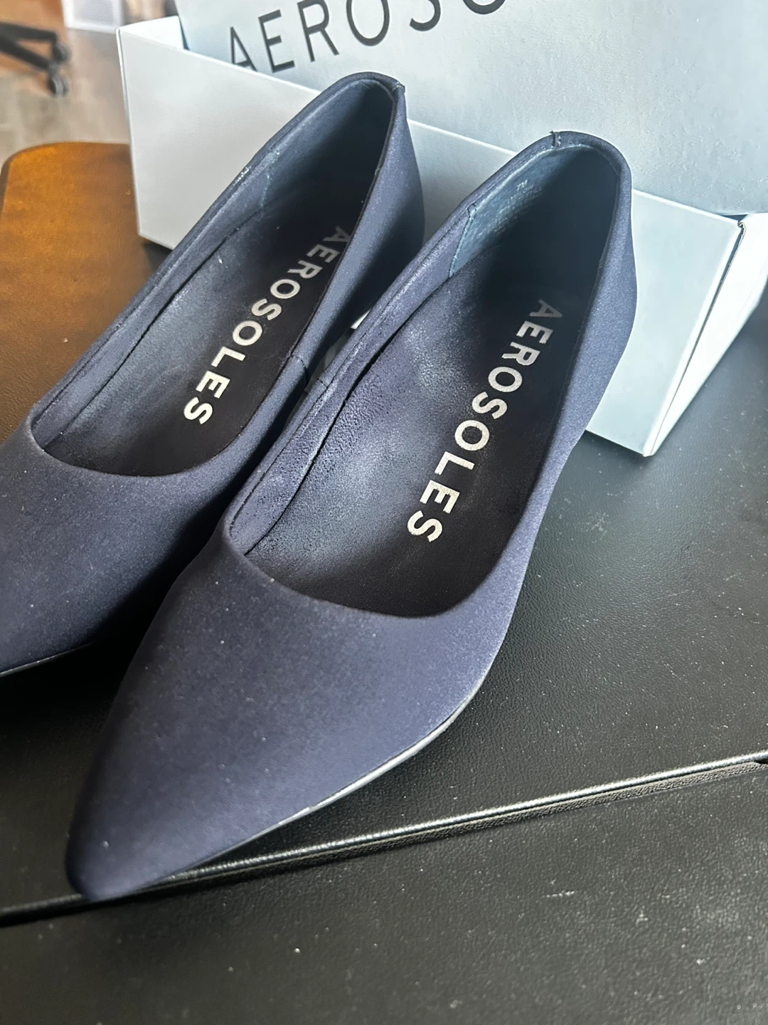 These Aerosoles Ludlow heels are a navy stretch fabric. They're a size 7 medium. Includes original box! $35 OBO