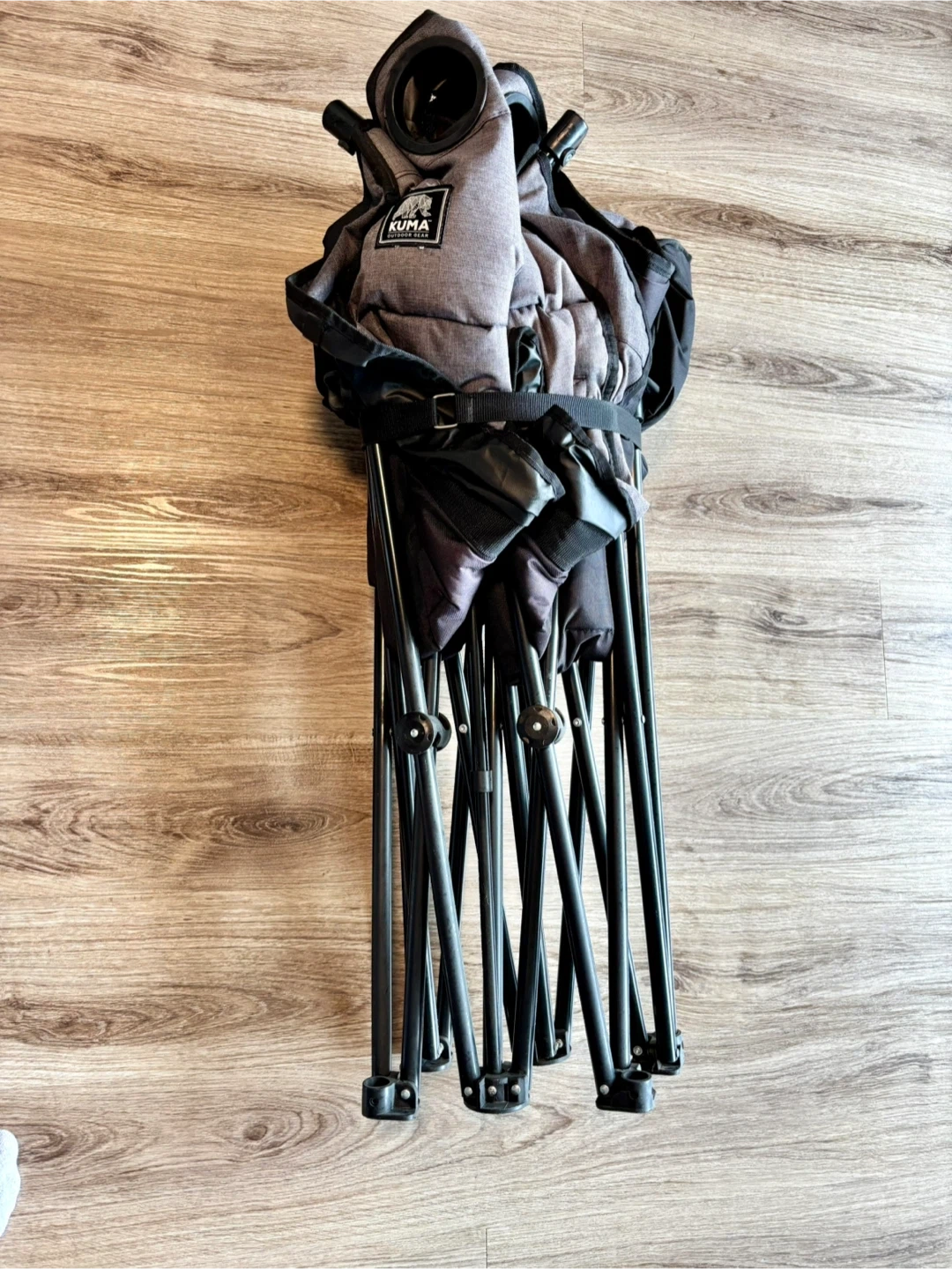Quality Kuma 2 seater fold up loveseat. Great for the lake, camping or patios & balcony. Folds down to carrier bag for easy transportation! Has Lexus logo as it was purchased at Lexus of Edmonton for $129 grey & black.