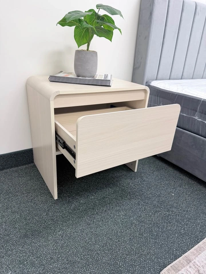 Brand new in box. Sleek and modern nightstand with a smooth curved design that adds a clean, stylish look to any bedroom. Features a spacious soft-close drawer for quiet, easy use and a handle-free front for a minimalist finish. Compact, sturdy, and perfect for keeping your essentials organized. Soft-close drawer, Modern curved design, No-handle clean look, Easy assembly (tools & instructions included). Great quality at an affordable price — ready to upgrade your space!