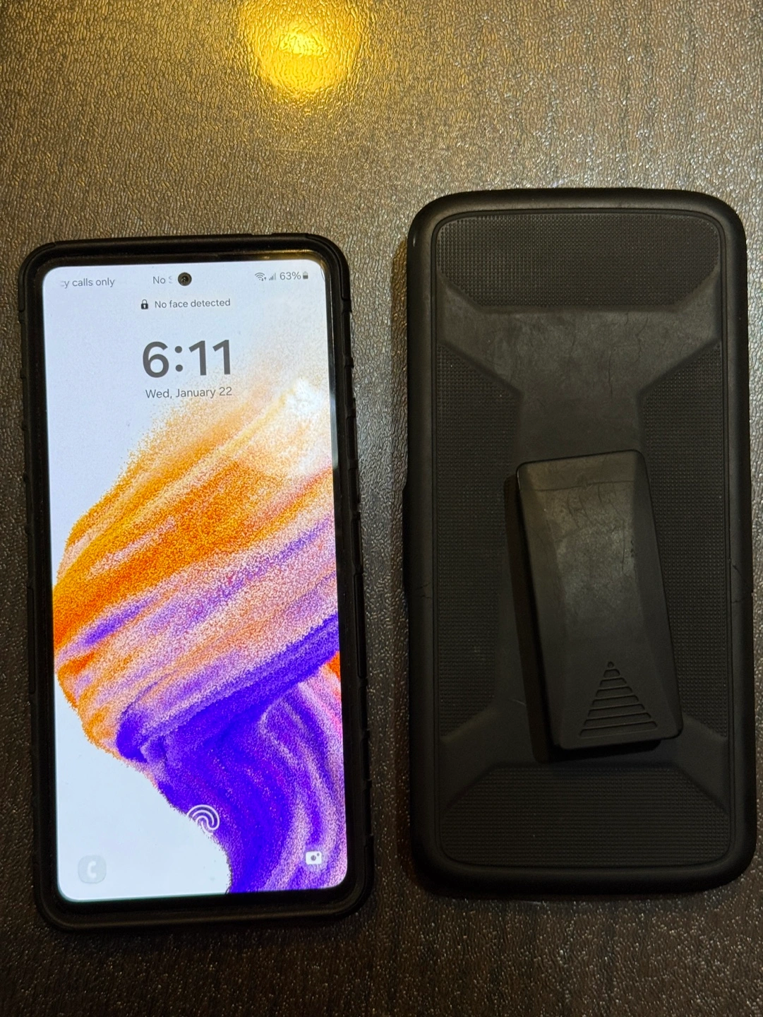 Comes with phone case with belt clip.