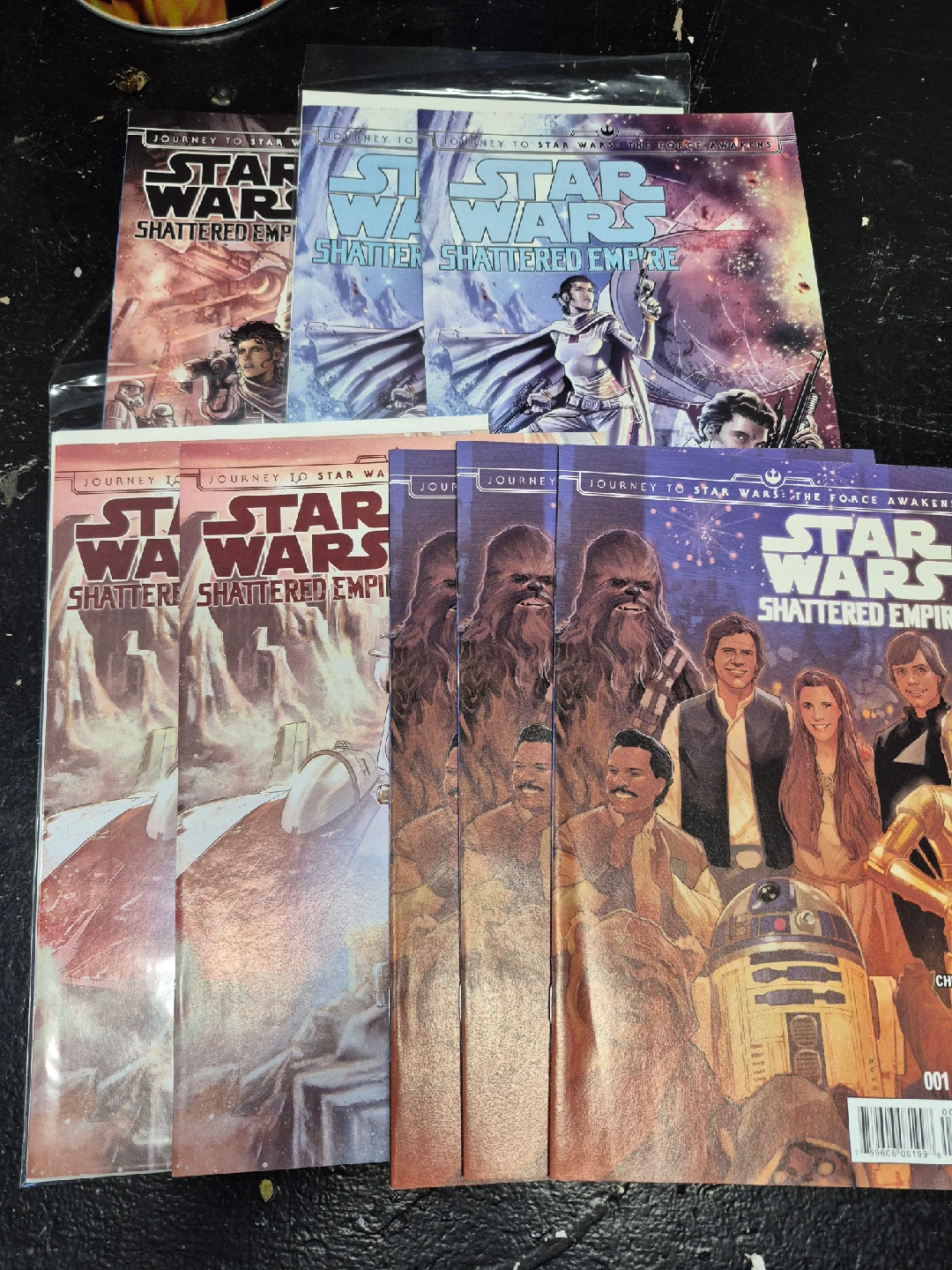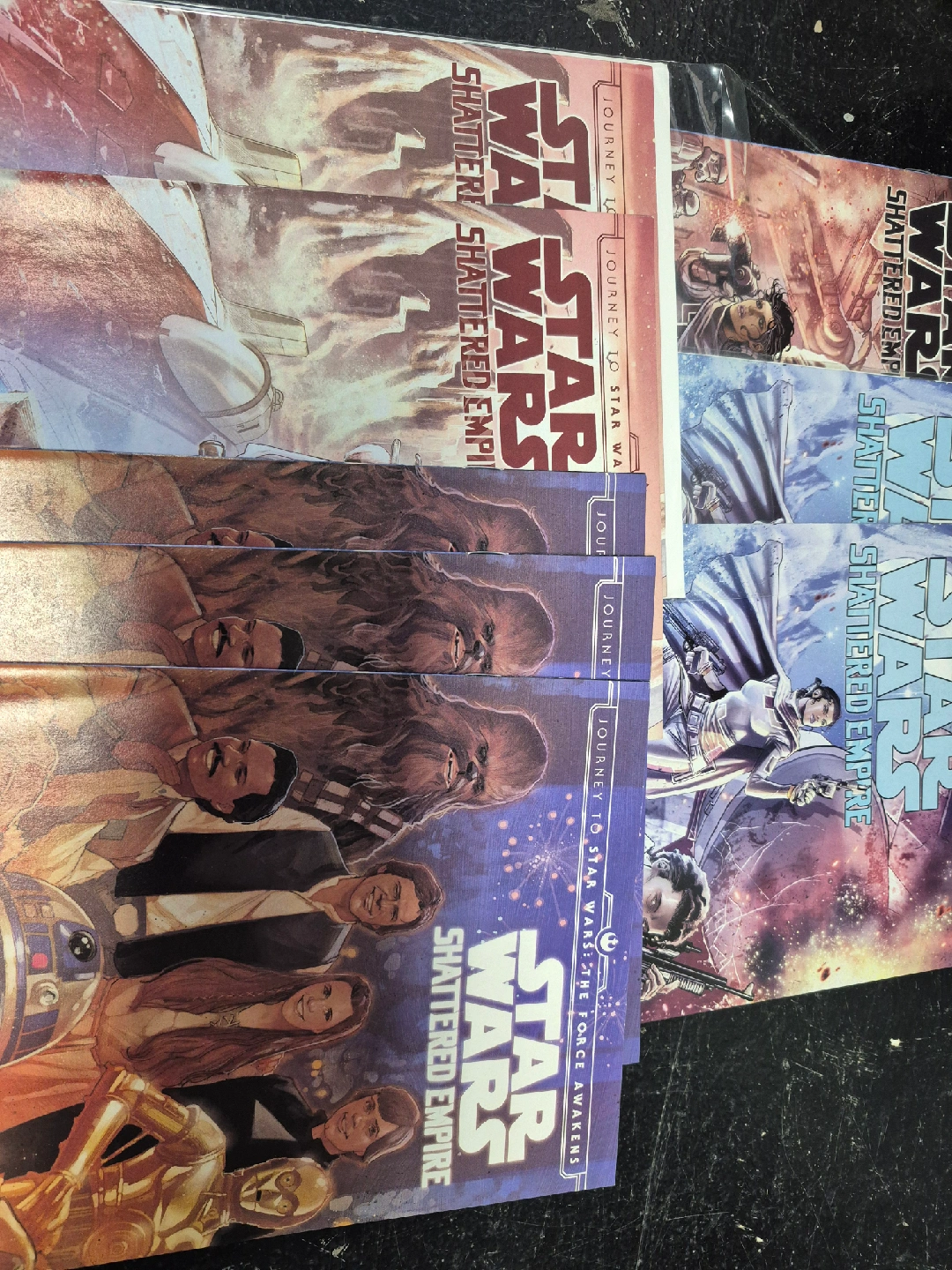 Selling a set of Star Wars: Shattered Empire comic books. These comics are part of the Journey to Star Wars: The Force Awakens series. A great addition to any Star Wars collection!