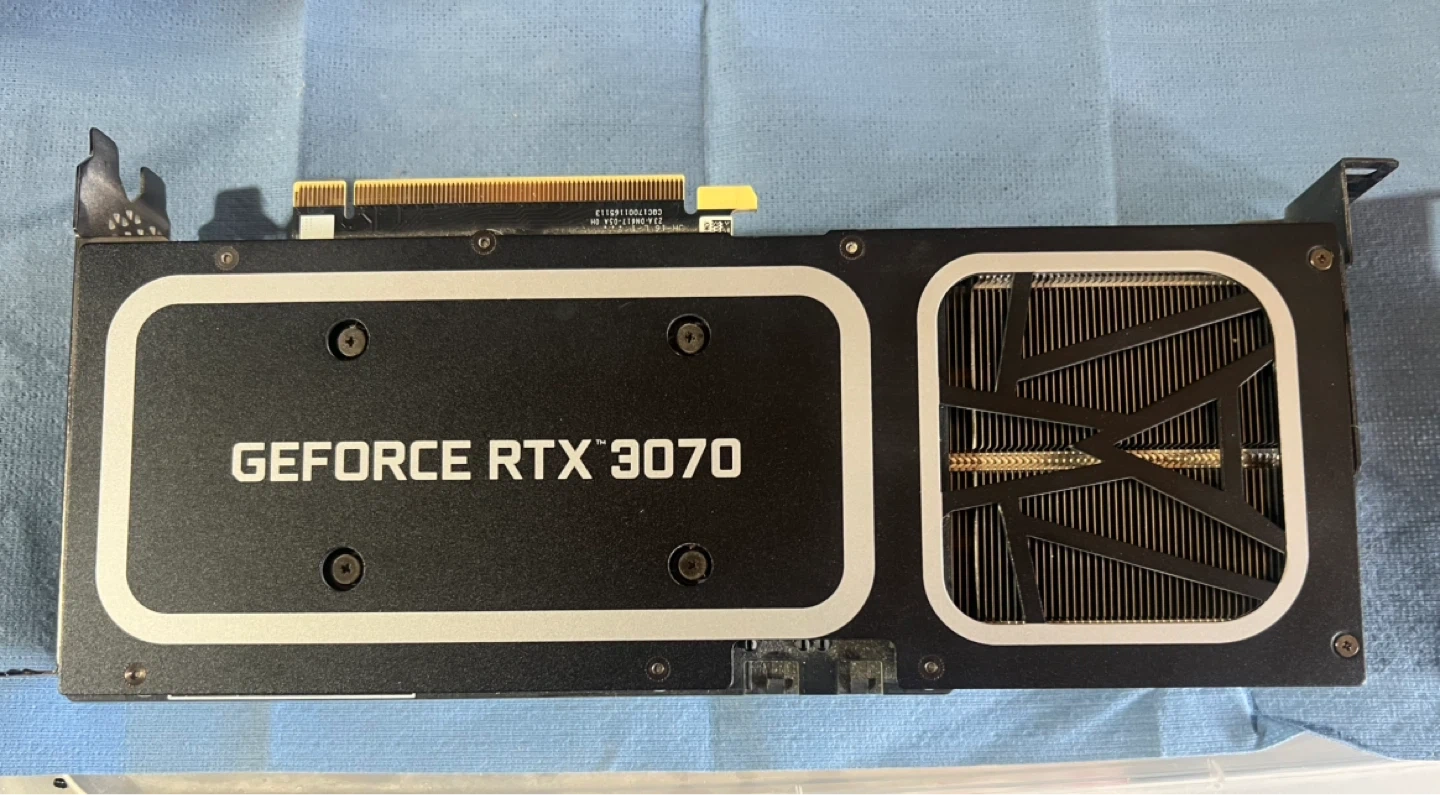 This is an Nvidia GeForce RTX 3070 graphics card. It's a high-performance component for gaming PCs. Includes multiple display outputs for connecting monitors.