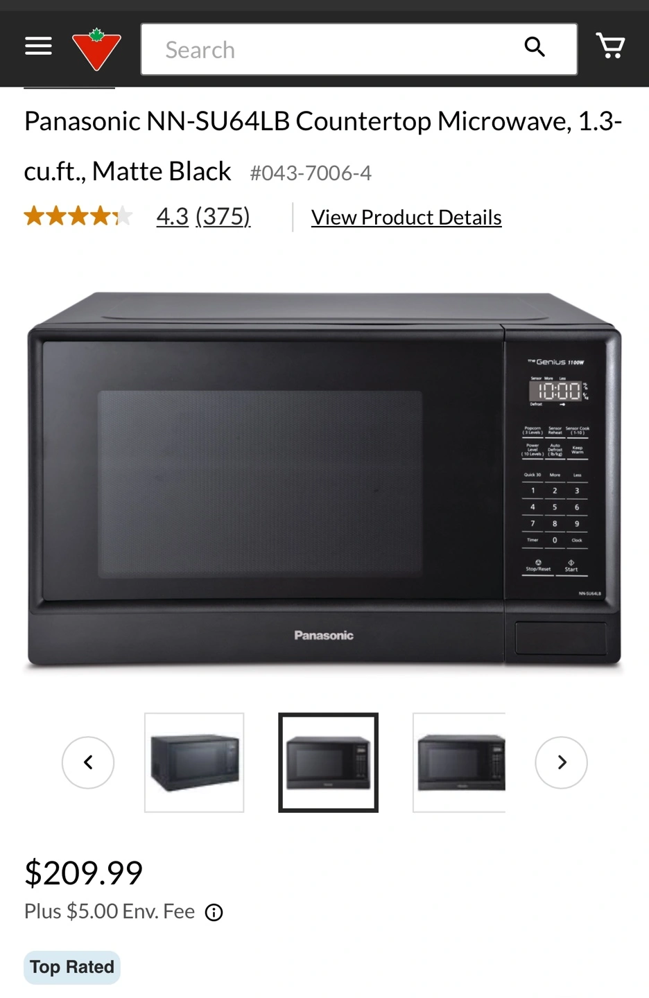 Panasonic NN-SU64LB Countertop Microwave - Matte Black