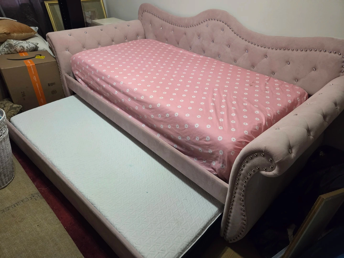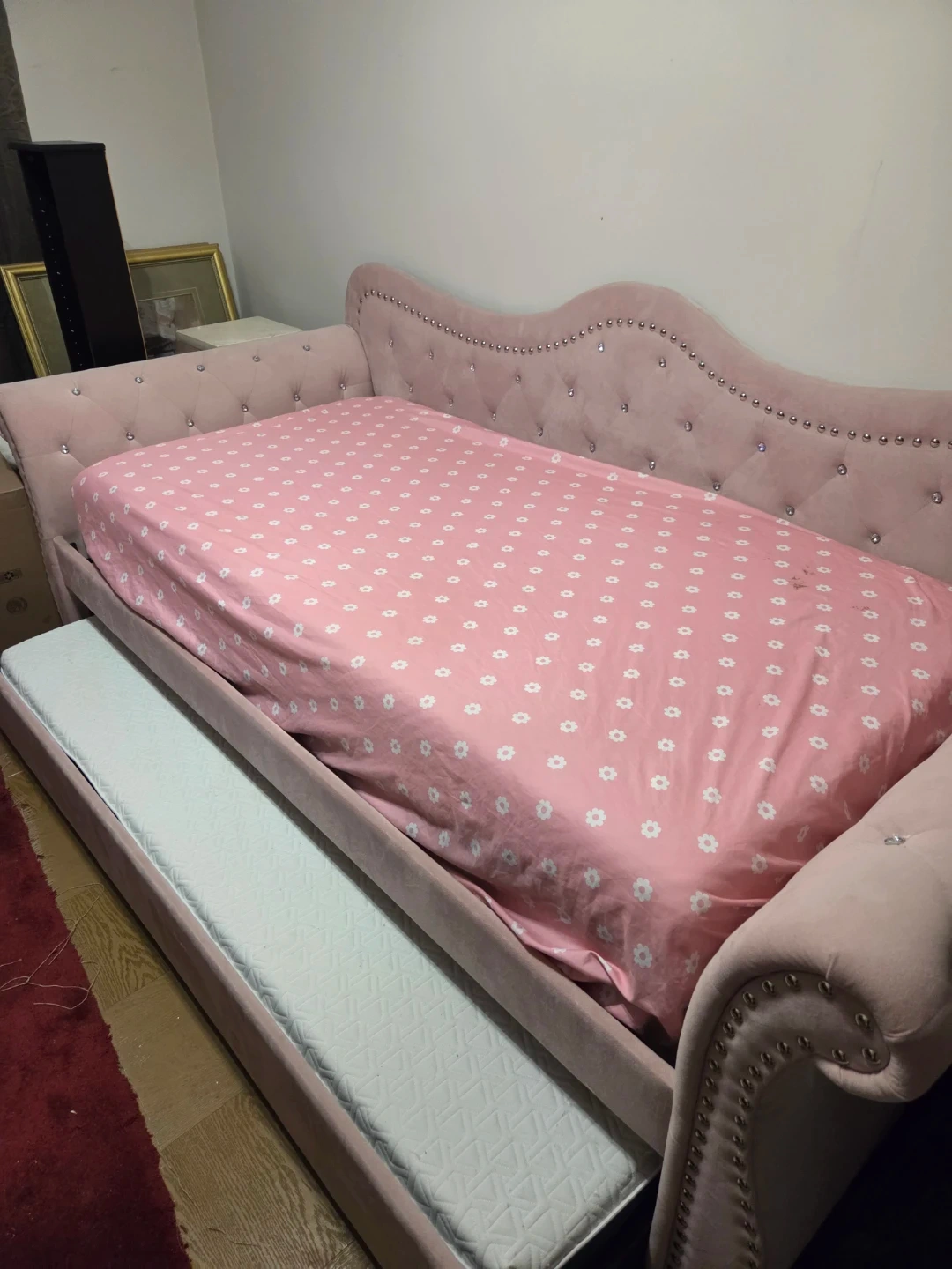 Pink Velvet Daybed with Trundle