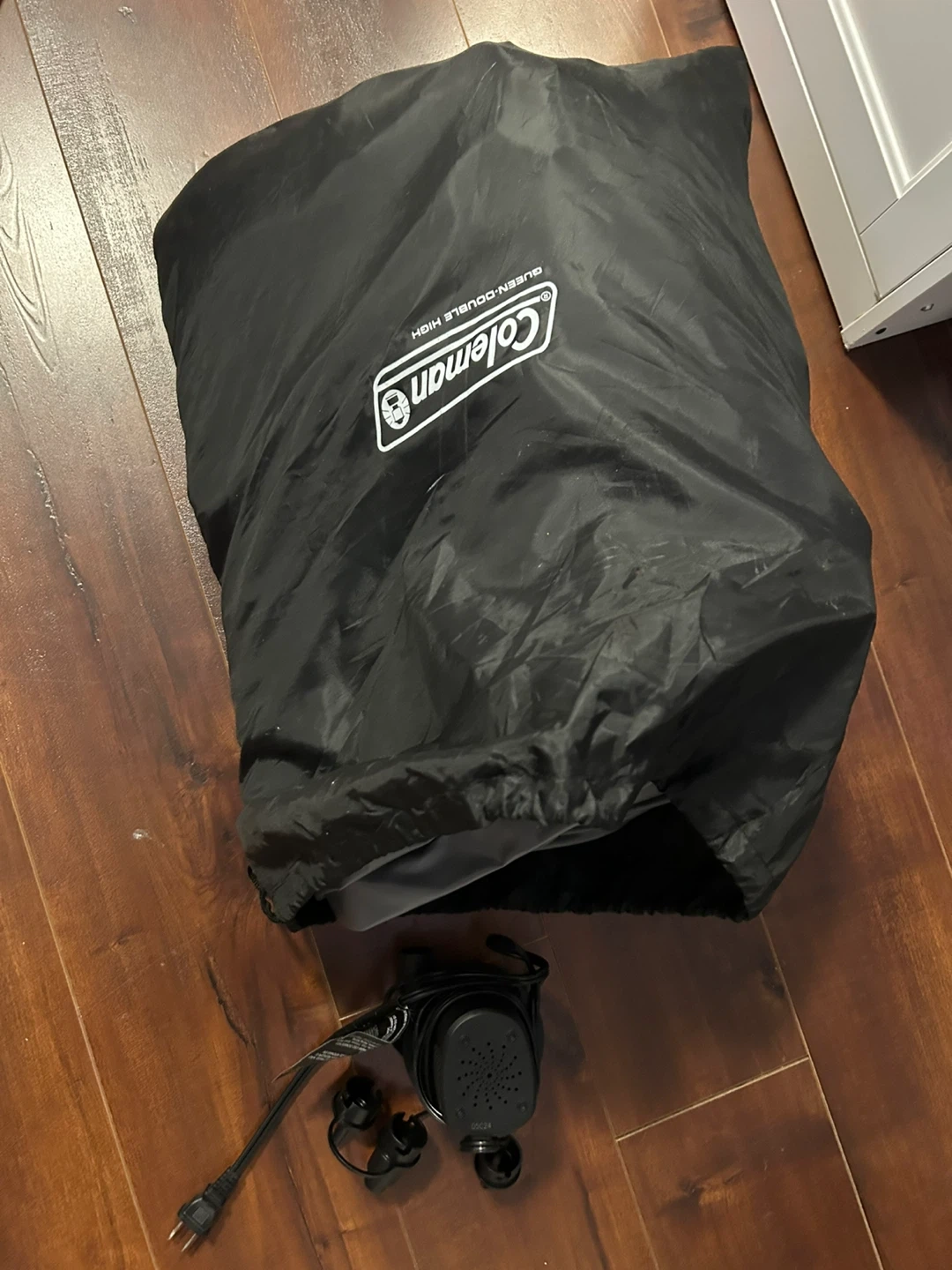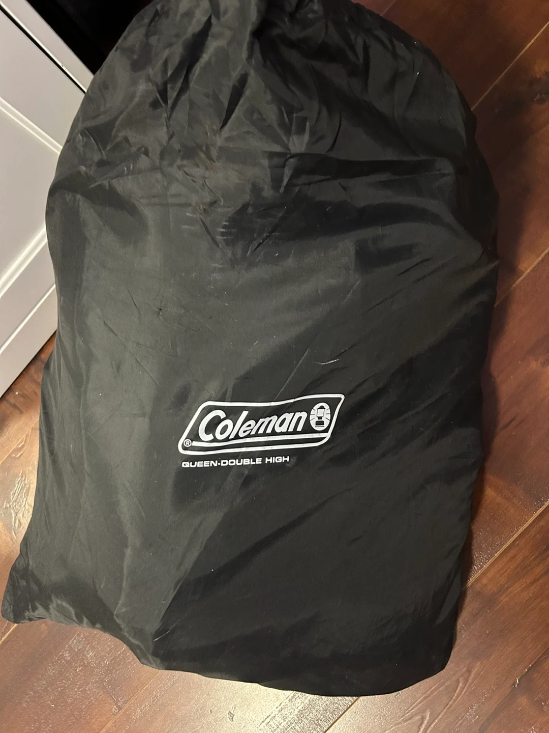 Selling a Coleman Queen Double High airbed. It comes with its original carrying bag and electric pump. The airbed is grey and the bag is black.