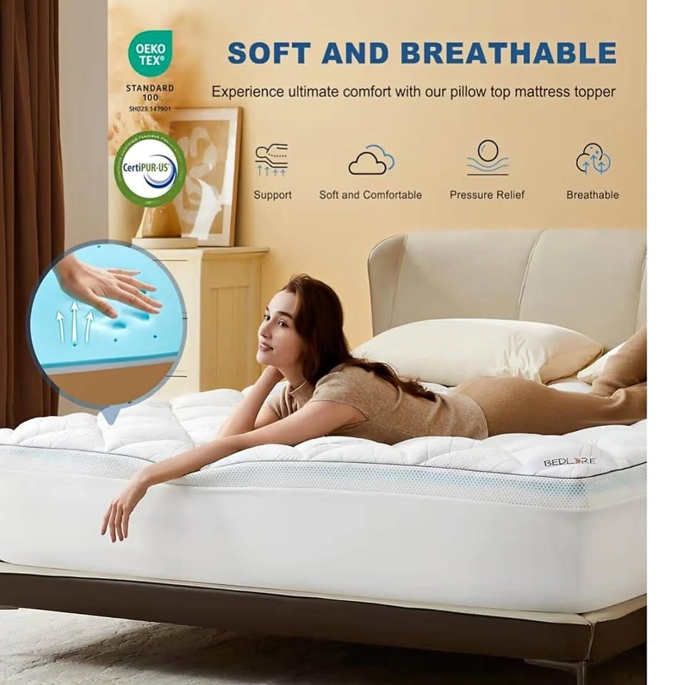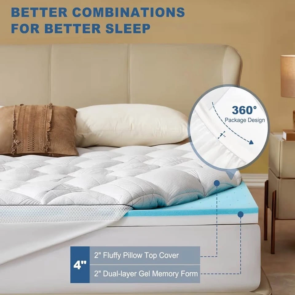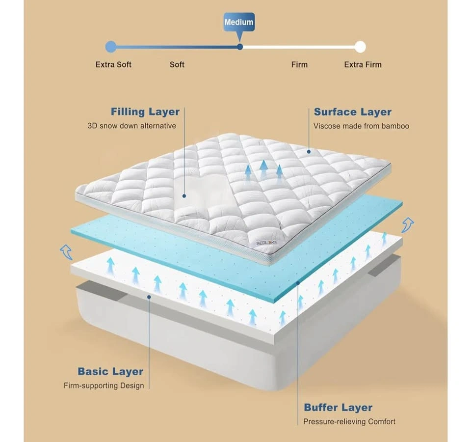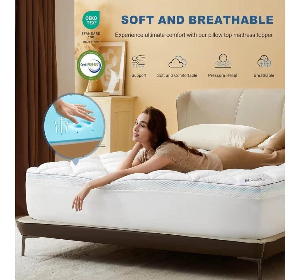 Brand new Bedlore King Size 4-inch mattress topper, still sealed in original packaging. Dual-layer design: 2” cooling gel memory foam + 2” pillow top. Medium support – great for comfort and back pain relief. Helps reduce pressure points. Cooling and breathable material. Fits standard king size beds.