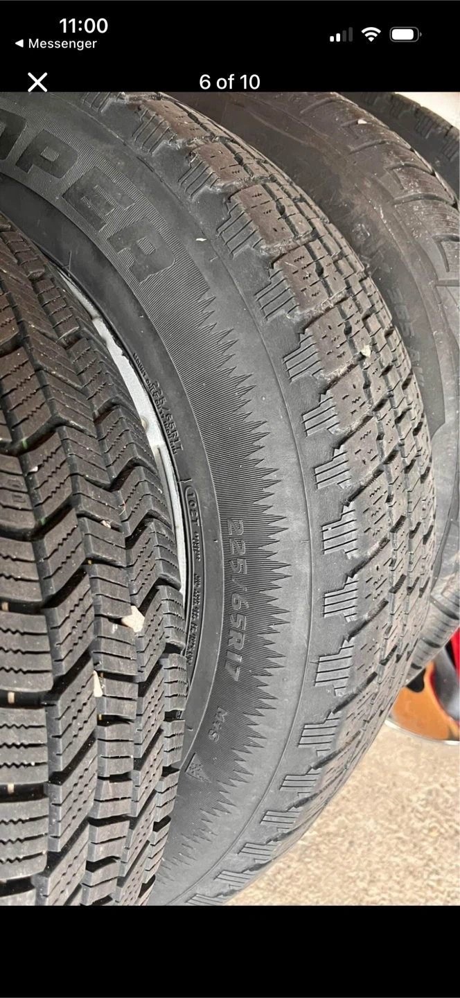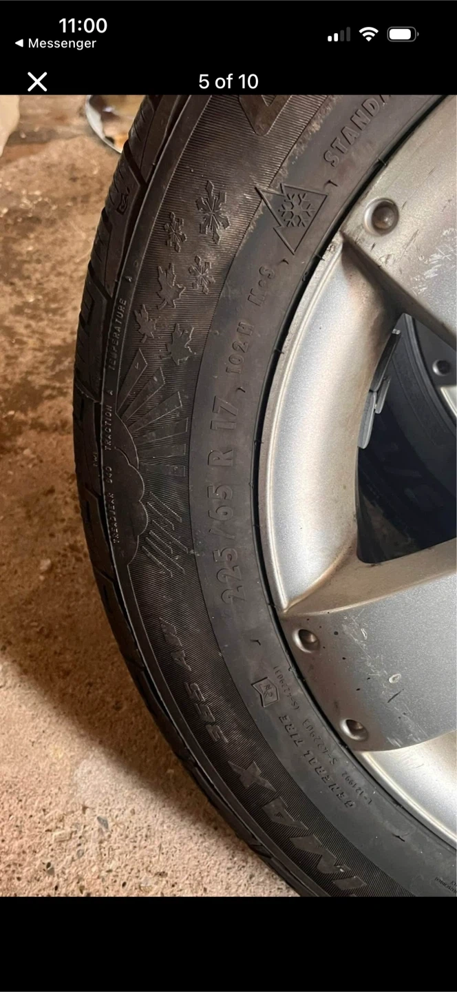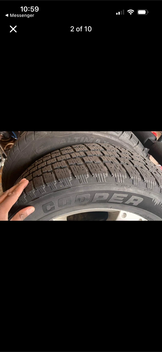 Selling a set of four Cooper Discoverer Altimax tires mounted on alloy rims. The tire size is 225/65 R17 102H. These are winter tires, great for Canadian winters!